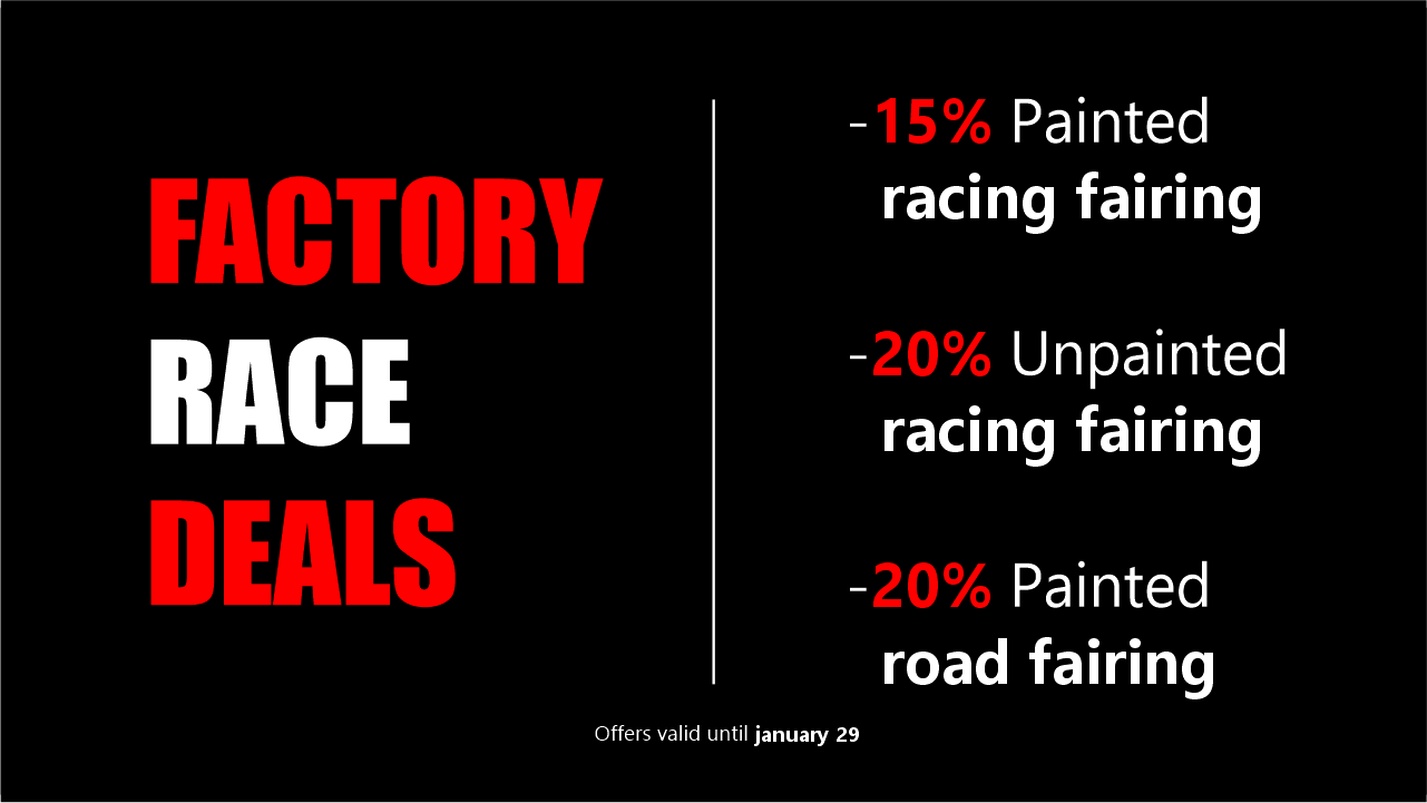 The fairing kit includes: front upper part, right and left side fairings, closed lower fairing approved for the track, tail fairing and front fender (the tank cover is not included in the price).Economic: we don’t use the original colour and the graphic chosen by the customer is under two layers of clear coat. The stickers are printed using...