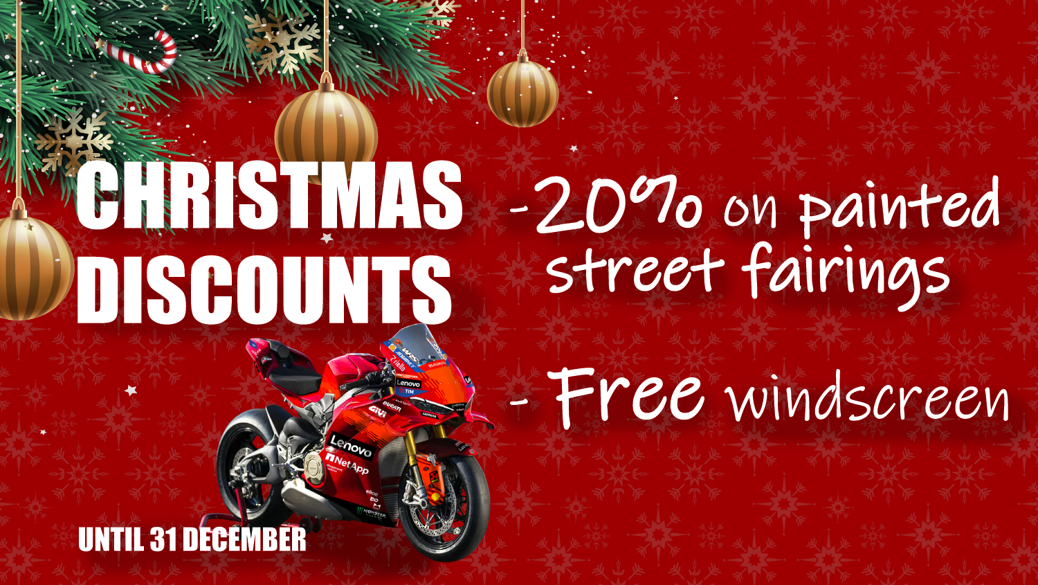 The fairing kit includes: front upper part, right and left side fairings, closed lower fairing approved for the track, tail fairing and front fender (the tank cover is not included in the price).Economic: we don’t use the original colour and the graphic chosen by the customer is under two layers of clear coat. The stickers are printed using...