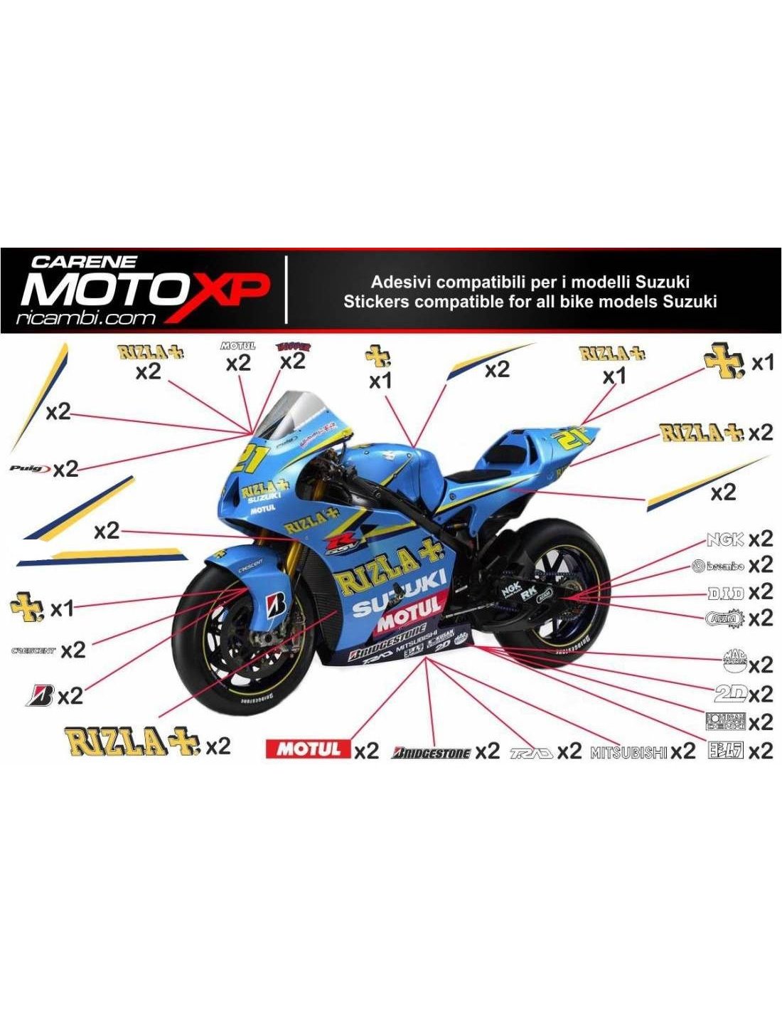 Aufkleber Satz kompatibel mit Suzuki Gsxr 600/750 2011 - 2026 - MXPKAD10224