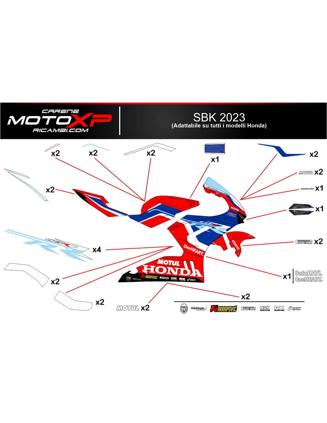 Aufkleber Satz kompatibel mit Honda Cbr 1000 RR 2020 - 2023 - MXPKAD16891