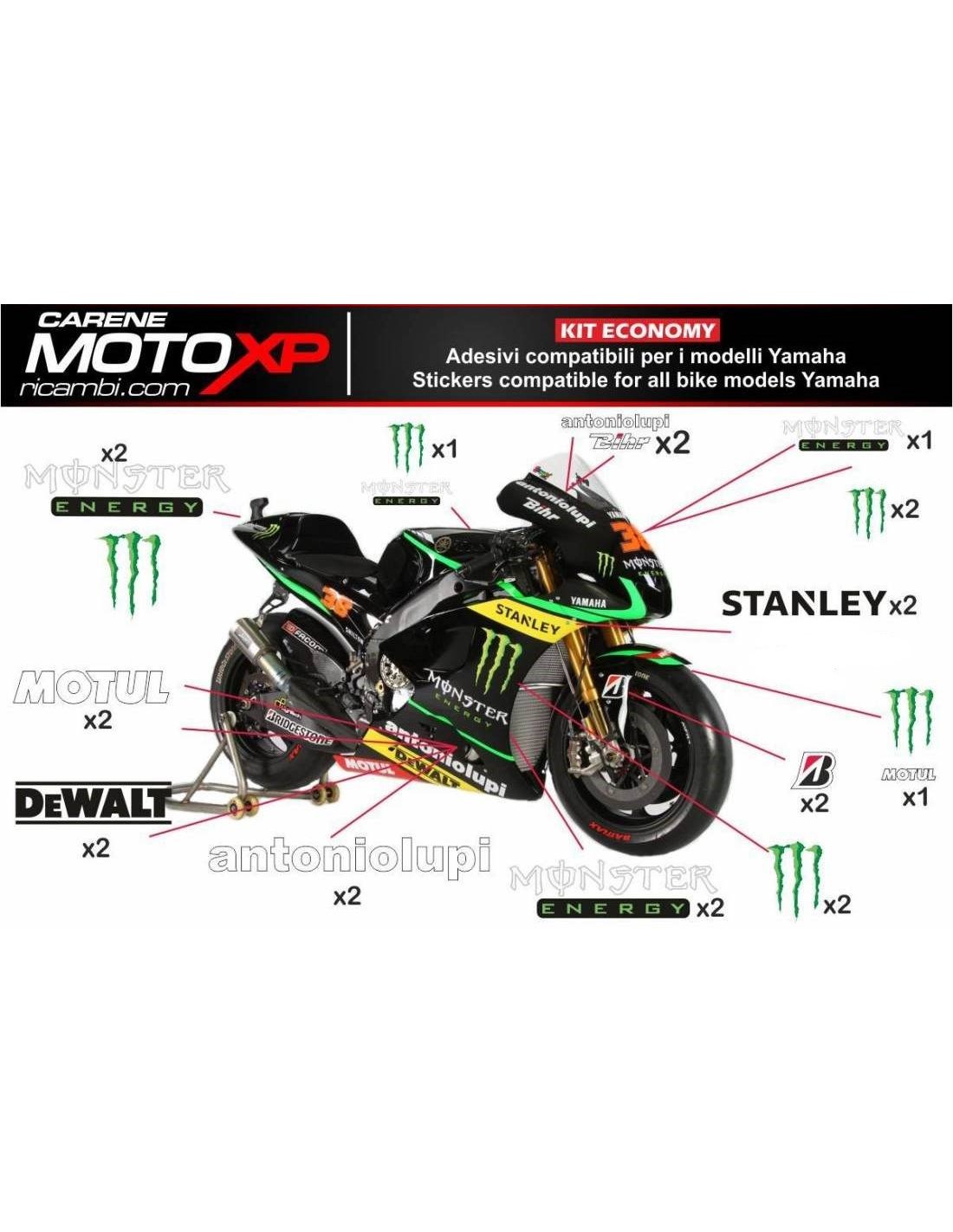 Die Aufkleber werden aus hochwertigen Materialien hergestellt und sind an die Maße des Motorrades, die der Kunde beim Kauf angibt, angepasst. Das Kit enthält alle nicht originalen Aufkleber, um das gewünschte Design zu vervollständigen: für das vordere obere Teil, die rechte und linke Seitenverkleidung, die Bugspoiler, den Höcker, die Schwinge und den vorderen Kotflügel. Es ist auch möglich, Aufkleber selbst zu individualisieren (Farben, Zahlen, Namen usw.). Es ist wichtig, Änderungen in das Feld "Weitere Informationen" zu schreiben. Der Preis des Aufkleber-Kits ändert sich nicht, es sei denn, wesentliche Änderungen (z. B. fluoreszierende Farben). Durch den Kauf akzeptiert man die Verkaufsbedingungen.Sie können sie unter dem Klarlack oder danach kleben. Sofern nicht anders gewünscht, liefern wir den Aufkleber mit dem Schutz.
