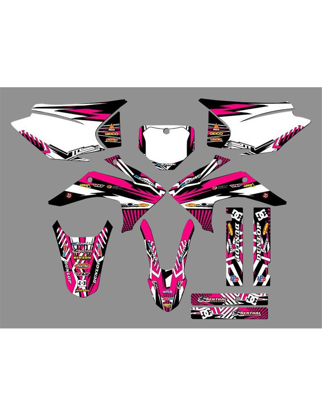 Die von uns hergestellten Aufkleber bestehen aus hochwertigen Crystalmaterialien, die einfach und perfekt an die Kunststoffe des Motorrads des Kunden angepasst werden. Die Widerstandsfähigkeit des Materials ermöglicht es, dass unsere Grafik auch unter den schwierigsten Einsatzbedingungen des Motorrads perfekt haftet. Die Installation, dank der Kanäle für die Luftabgabe, lässt Sie die Aufkleber reibungslos und ohne Blasen anbringen. Wir verwenden für den Druck Maschinen der neuesten Generation, damit wir leuchtende Farben und hochwertige Farbtöne drucken können. Wir haben die Aufkleber mit einer Schutzschicht versehen, damit sie im Laufe der Jahre immer hell bleiben und vor Wasser und Schmutz geschützt sind. Es ist möglich, die Aufkleber nach Ihren Wünschen anzupassen. Sie können Techniker-Sponsoren hinzufügen, entfernen oder ändern, eine benutzerdefinierte Startnummer oder Ihren eigenen Namen hinzufügen. Alle Änderungen können Sie während des Kaufs im Feld „Benutzeranpassung“ auf der Website angeben. Wir beschränken uns nicht nur auf die Grafiken auf unserer Website, Sie können uns per E-Mail oder WhatsApp ein Bild von einem Design senden, das wir nicht haben, damit wir Ihnen ein Angebot unterbreiten und es dann erstellen können. Durch den Kauf akzeptiert man die Verkaufsbedingungen.