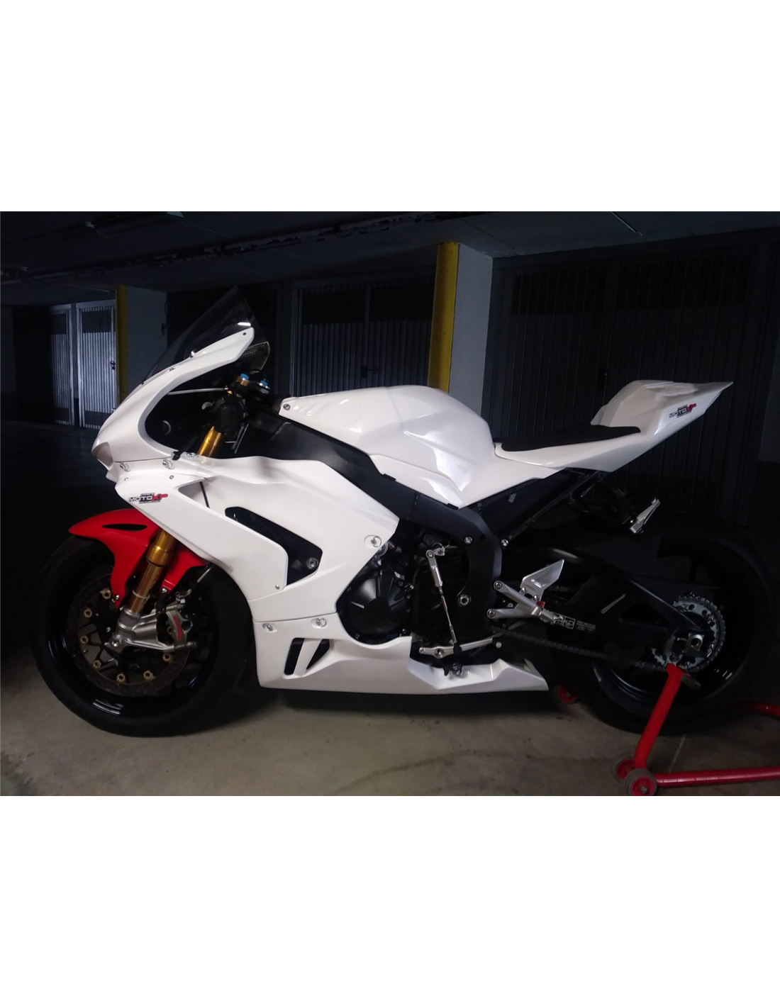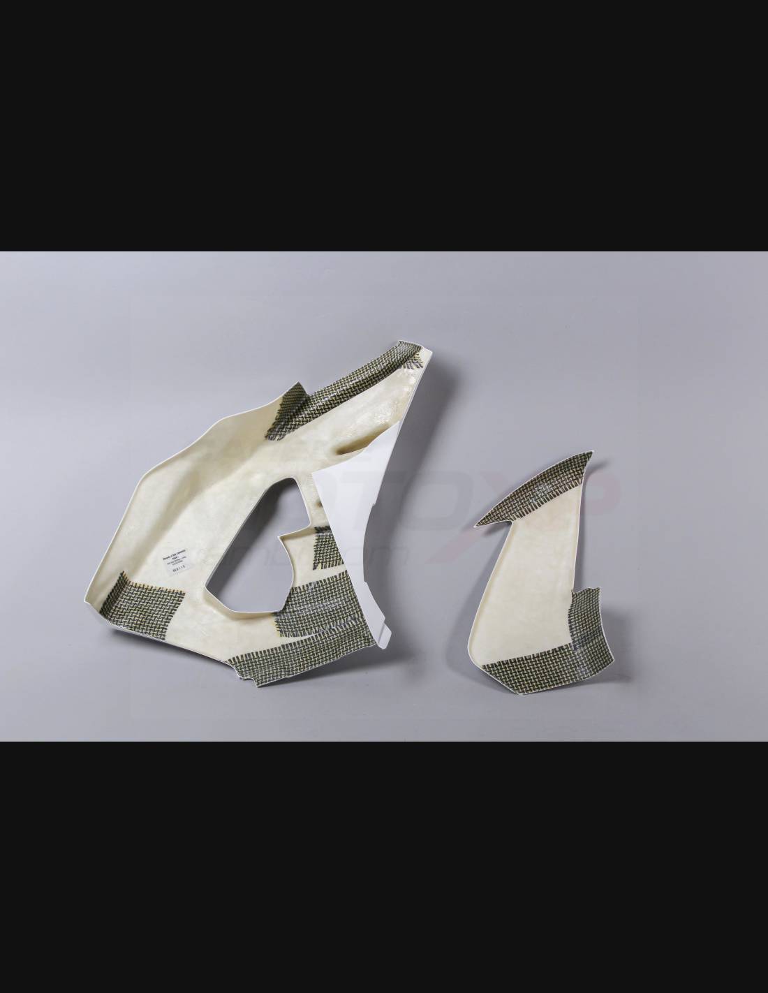 Unsere Rennverkleidung sind auf Fiberglas, sie sind auf Carbon und Kevlar in Stresszonen verstärkt. Unsere Unterverkleidung ist eingeschlossen, so die Verkleidung sind für verschiedene Meisterschaften und für die Amateur-Nutzung auf den Rennstrecken genehmigt. Wir markieren wo Sie die Löcher bohren sollten, so Sie können das Loch nach der Abmessung der Schraube, die Sie verwenden möchten, machen.