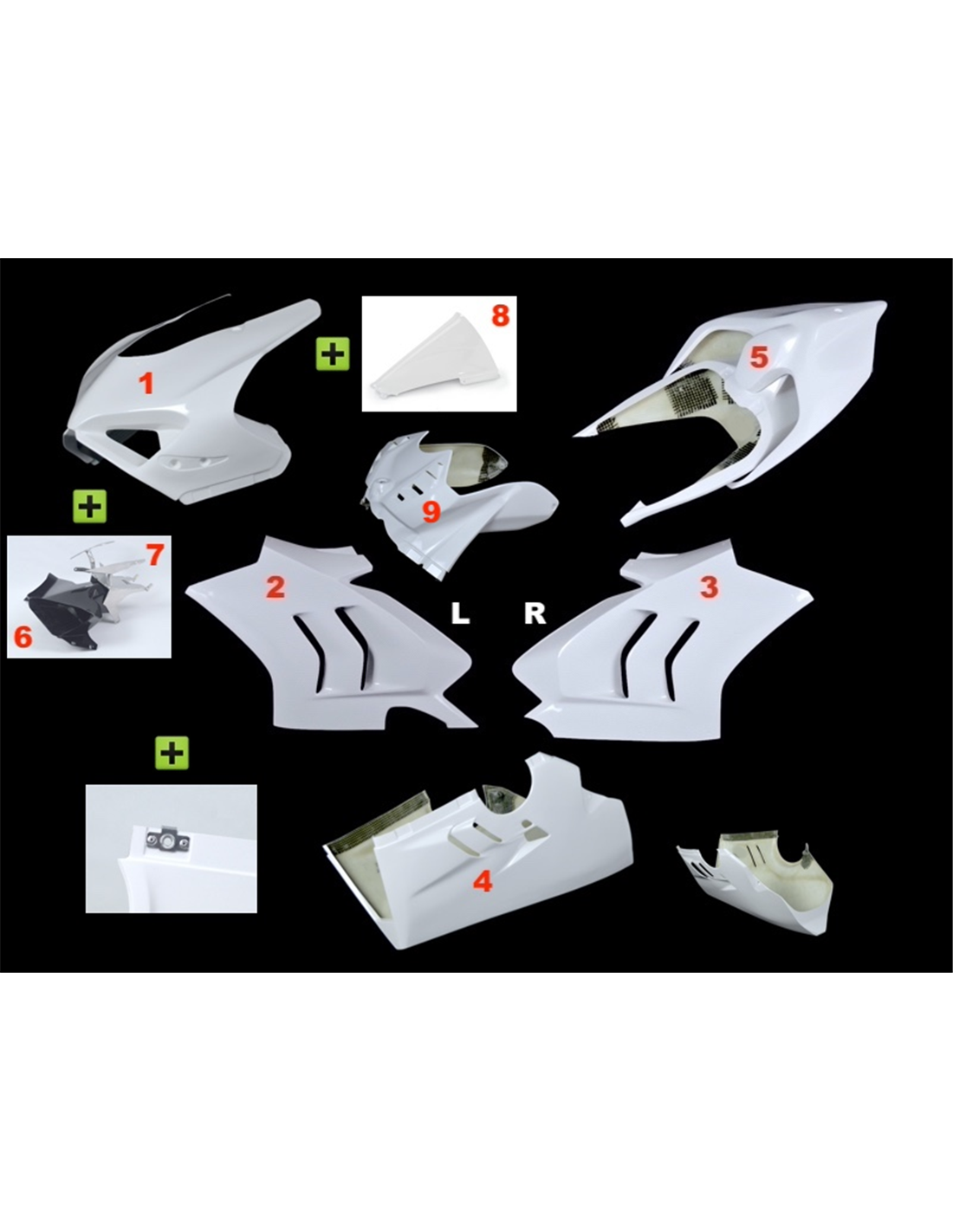 Ducati V4 Panigale 2018-2021 Konversion auf Ducati V4 2022-2024 - Komplettsatz 9-teilig Racing enthält: