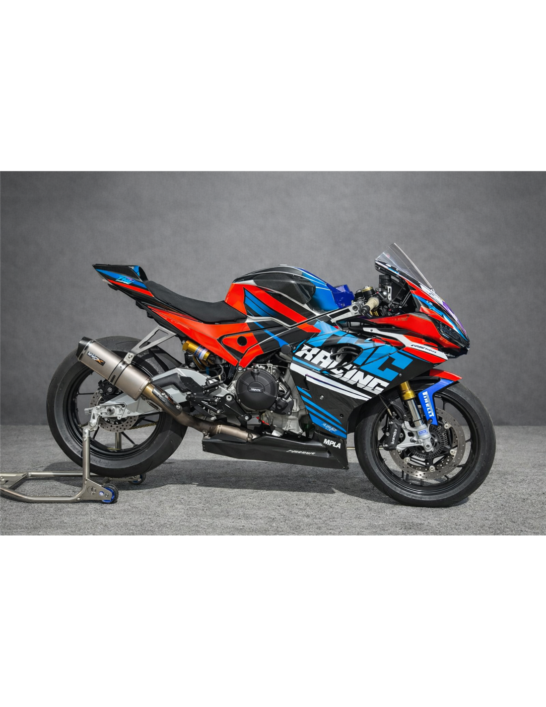 Die Verkleidungssatz enthält: Frontverkleidung, Seitenverkleidung rechts und links, geschlossene Unterverkleidung und zugelassen für die Rennstrecke, Heck und Kotflügel vorne (Tankabdeckung ist nicht eingeschlossen).