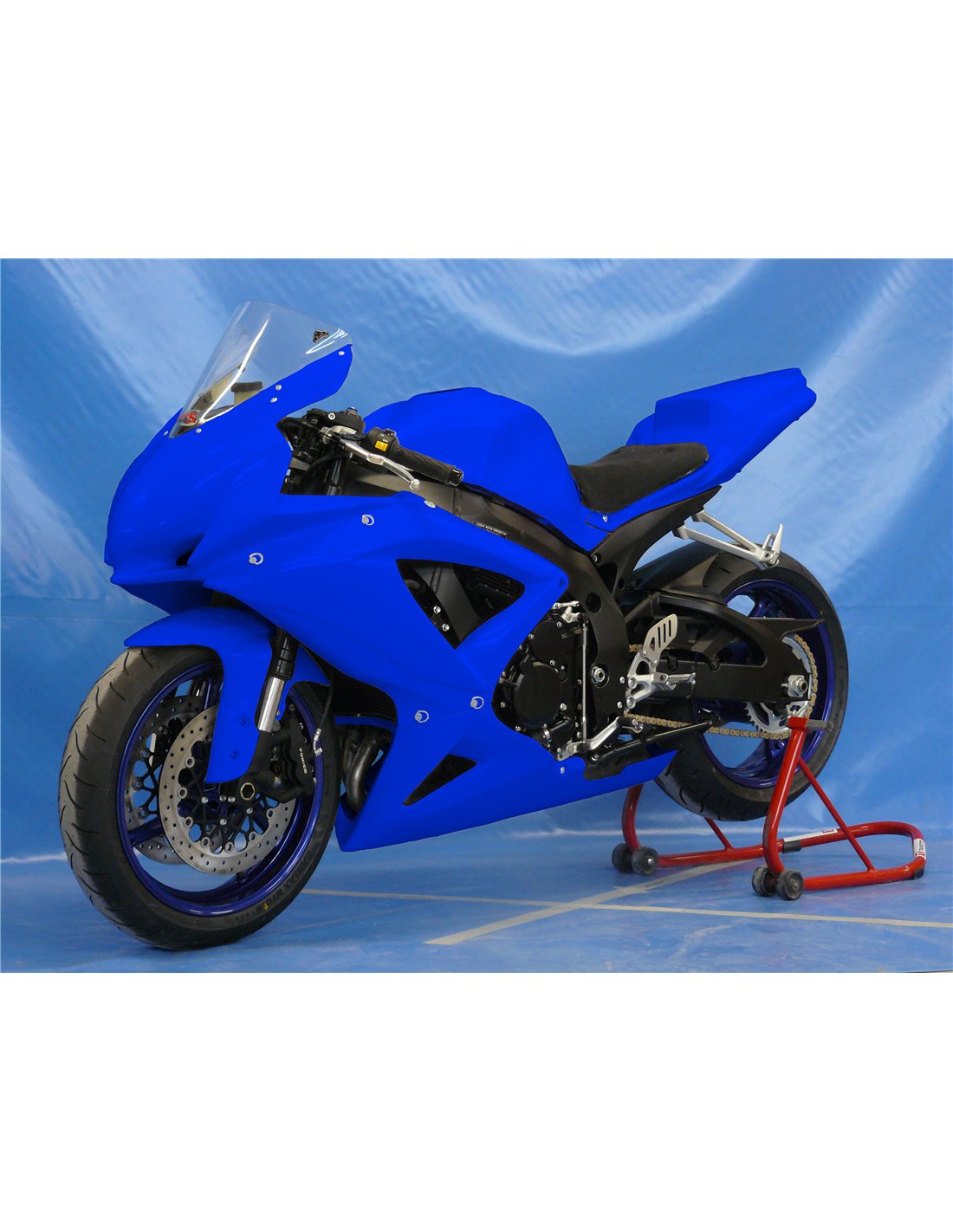 Unsere Rennverkleidung sind auf Fiberglas, sie sind auf Carbon und Kevlar in Stresszonen verstärkt. Unsere Unterverkleidung ist eingeschlossen, so die Verkleidung sind für verschiedene Meisterschaften und für die Amateur-Nutzung auf den Rennstrecken genehmigt. Wir markieren wo Sie die Löcher bohren sollten, so Sie können das Loch nach der Abmessung der Schraube, die Sie verwenden möchten, machen.