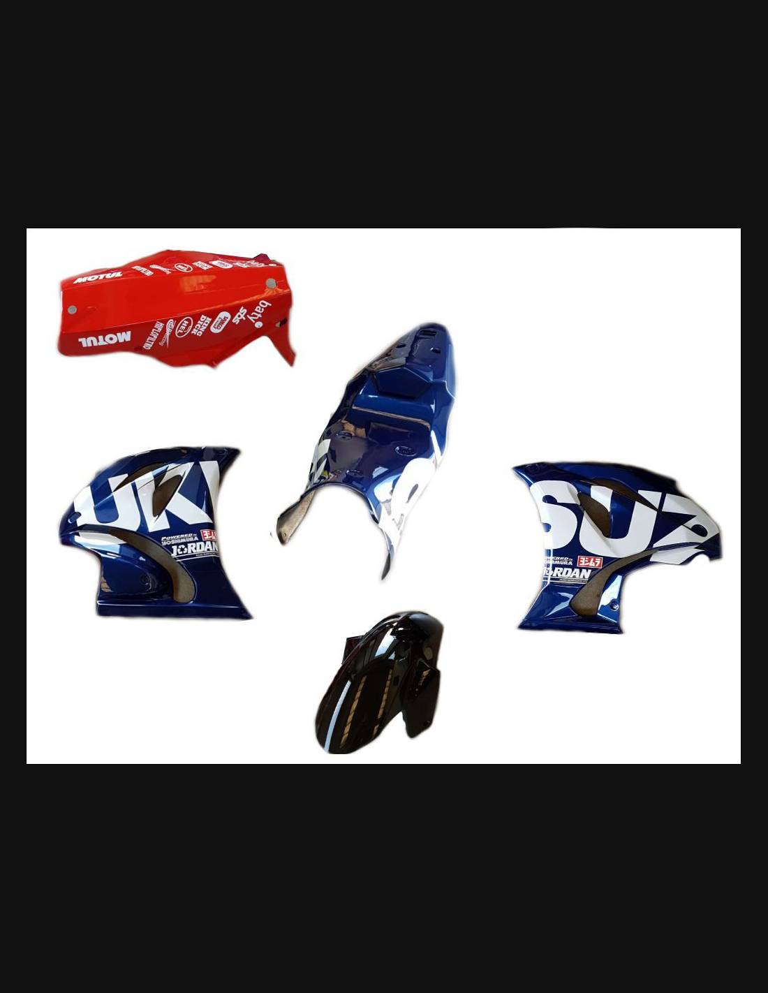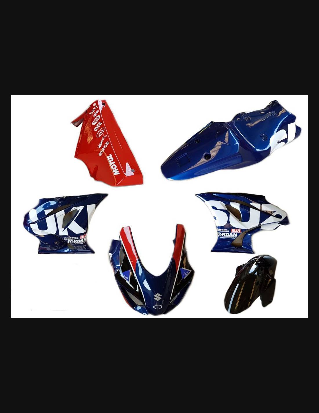 Die Verkleidungssatz enthält: Frontverkleidung, Seitenverkleidung rechts und links, geschlossene Unterverkleidung und zugelassen für die Rennstrecke, Heck und Kotflügel vorne (Tankabdeckung ist nicht eingeschlossen).