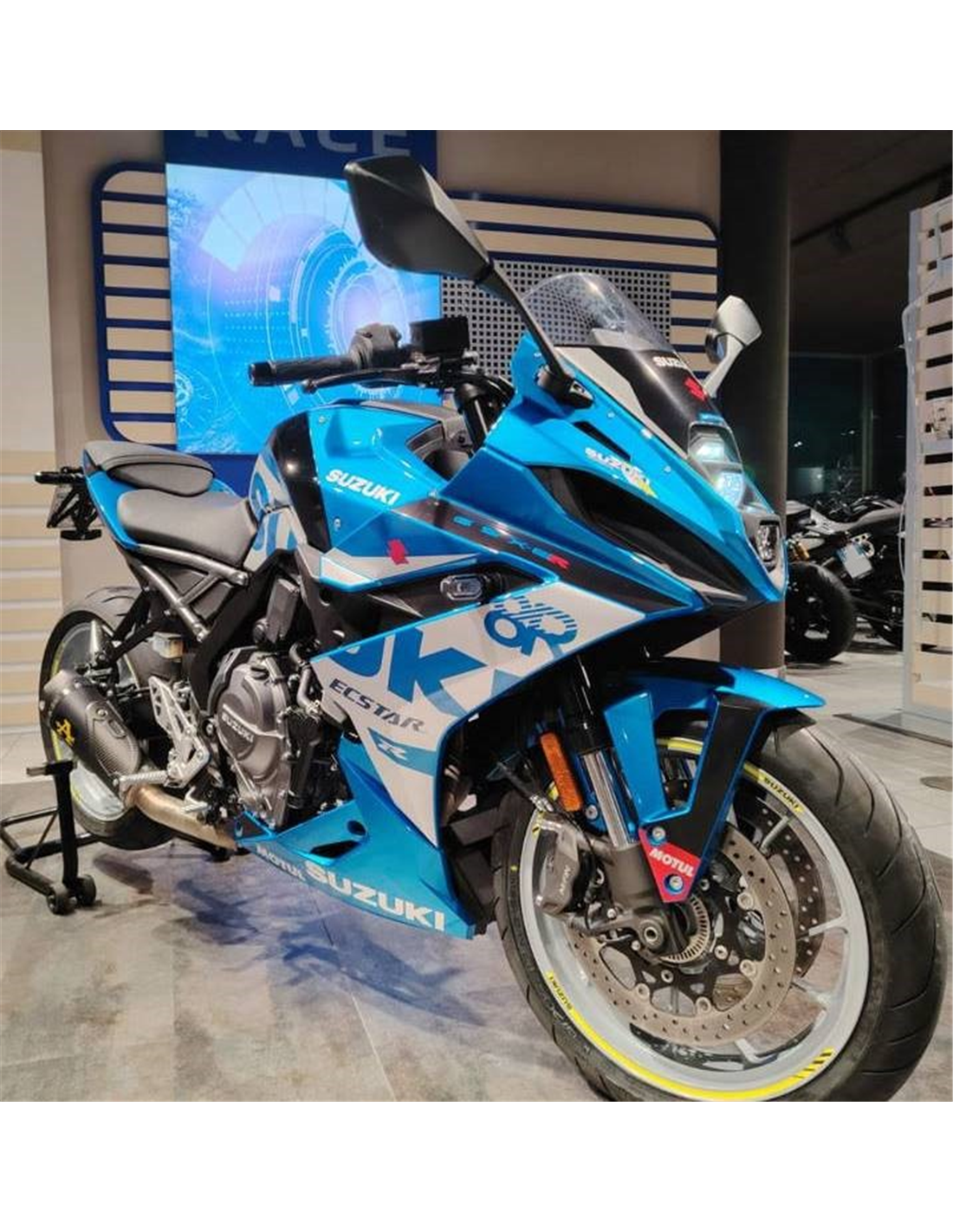 Elite: utilizamos productos de la RM, PPG con una calidad claramente superior con colores metálicos como el original, o transparente metálico; los adhesivos están impresos con varios tonos gracias a nuestro plóter de corte y de impresión de 8 colores con tintas ECO-SOL MAX2 con una alta calidad y resistencia a la luz solar hasta 7 años garantizados por la empresa APA Italia que nos dalos materiales necesarios para el corte y la impresión. Los adhesivos están cubiertos por tres capas de transparente y eso los hace brillar durante 7 años. Además todo el carenado está pintado en el interior.