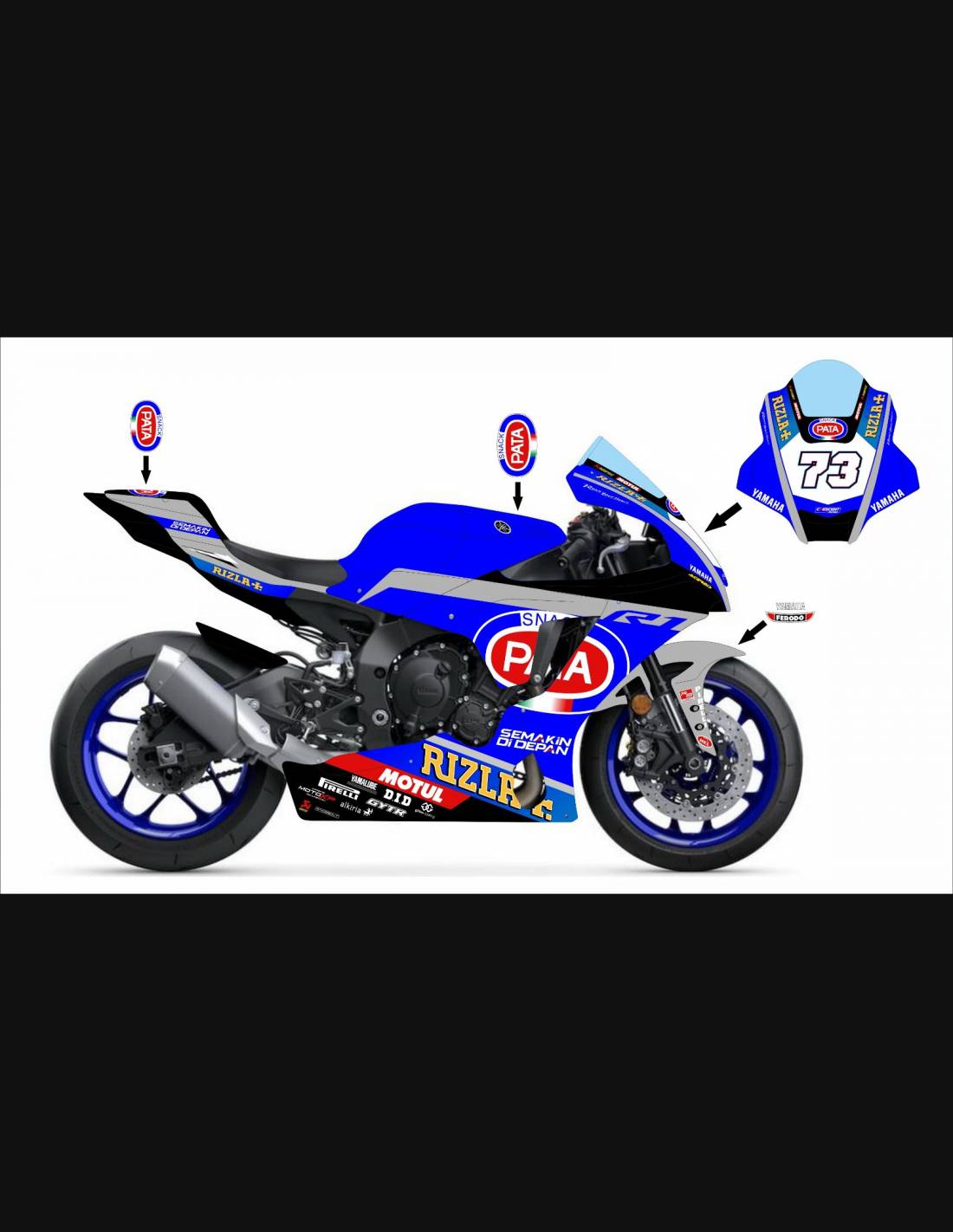 El kit de carenados incluye: carenado frontal, laterales de derecha y izquierda, quilla cerrada homologada para la pista, colin (el cubre deposito, y guardabarros delantero no se incluye en el precio).