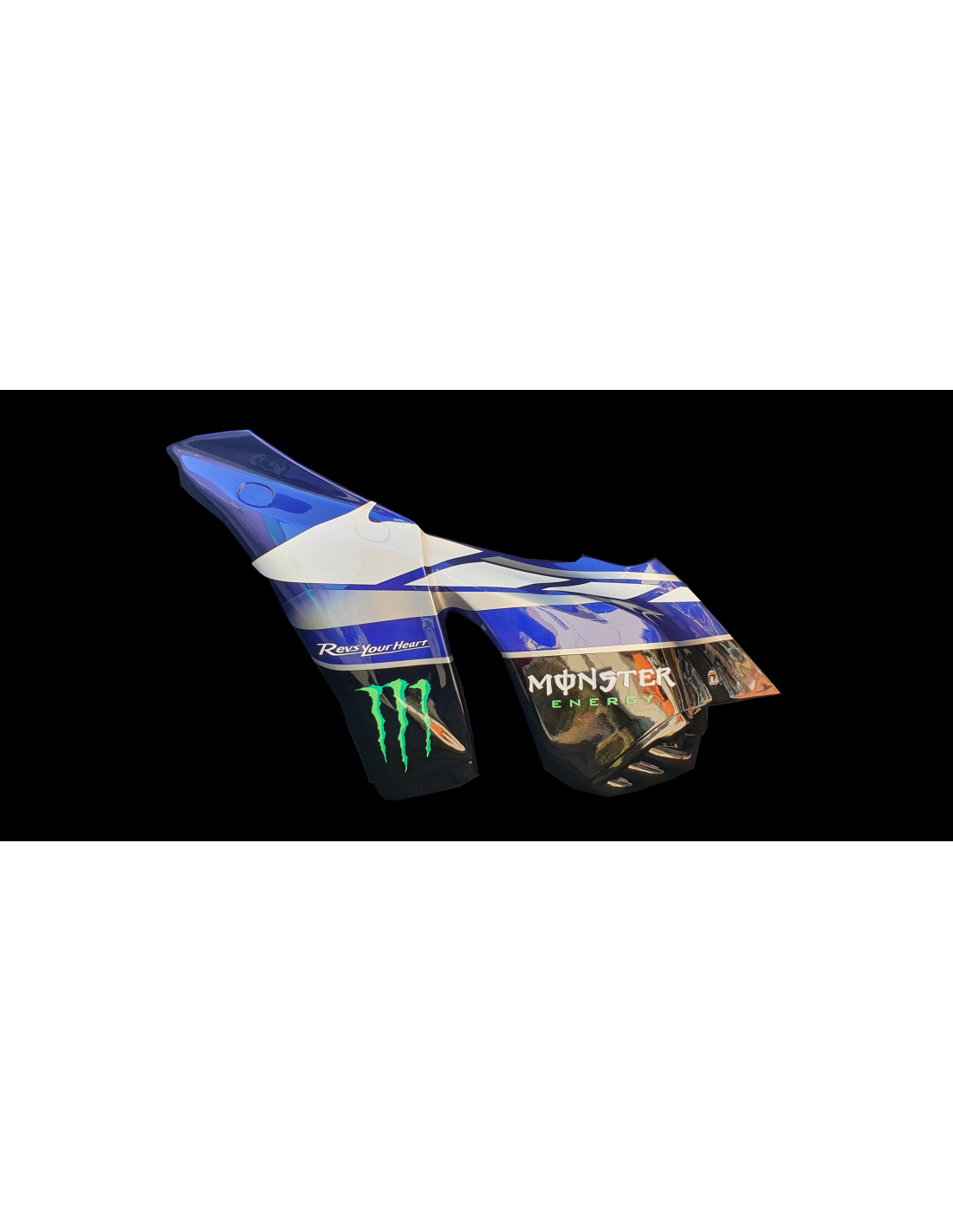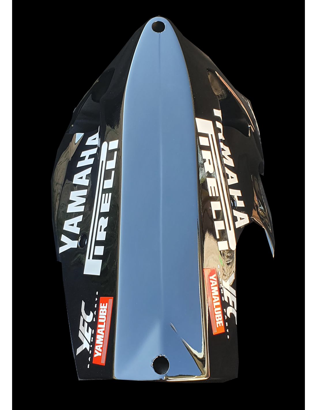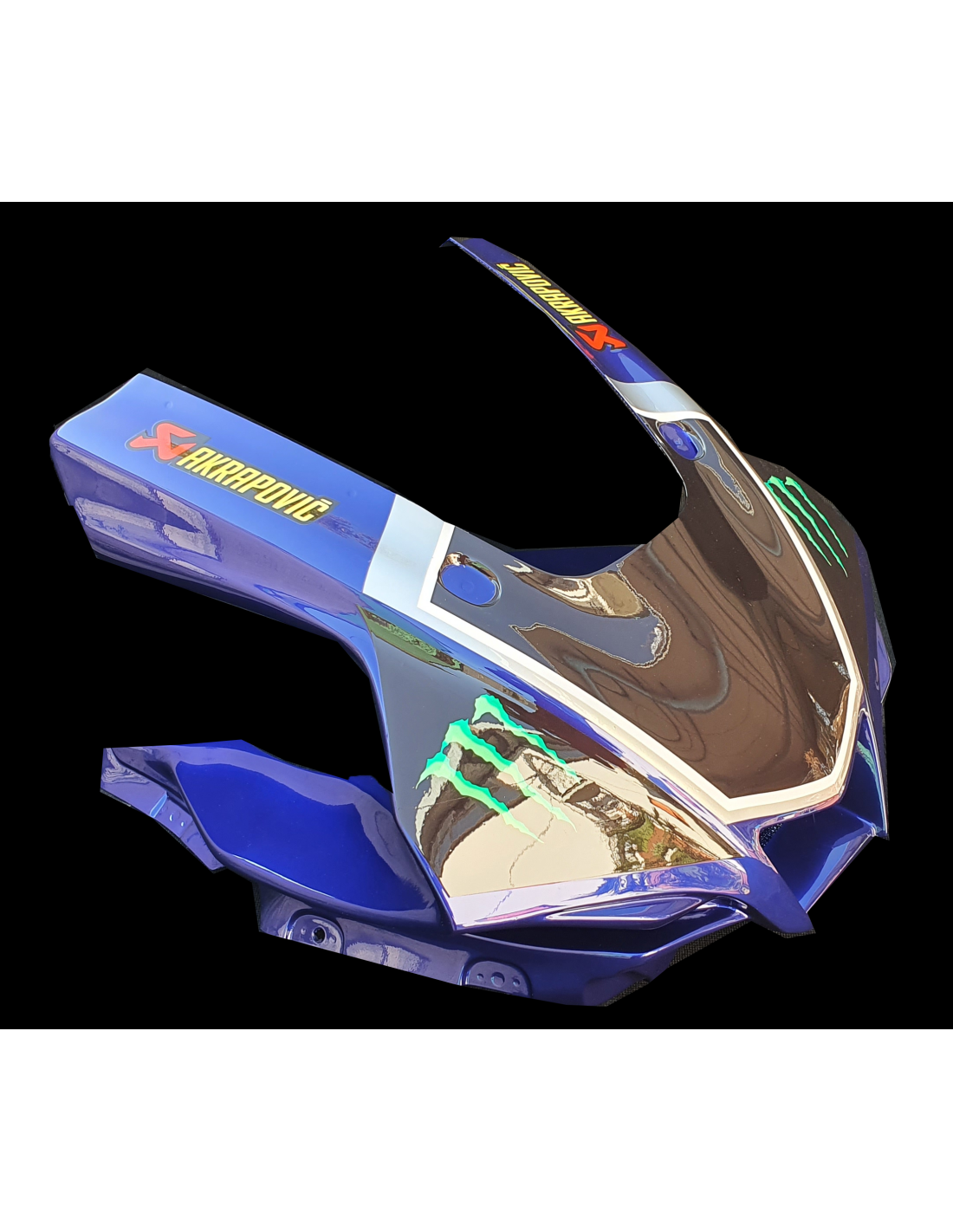 Elite: utilizamos pinturas de alta calidad con tonalidades similares a las originales. Las pegatinas se imprimen con impresoras de 8 colores que les dan un brillo y matices impecables. Todo el gráfico se encuentra bajo tres capas de transparente para mantener los colores del carenado brillantes con el tiempo. También pintamos todo el kit de carenado por dentro.