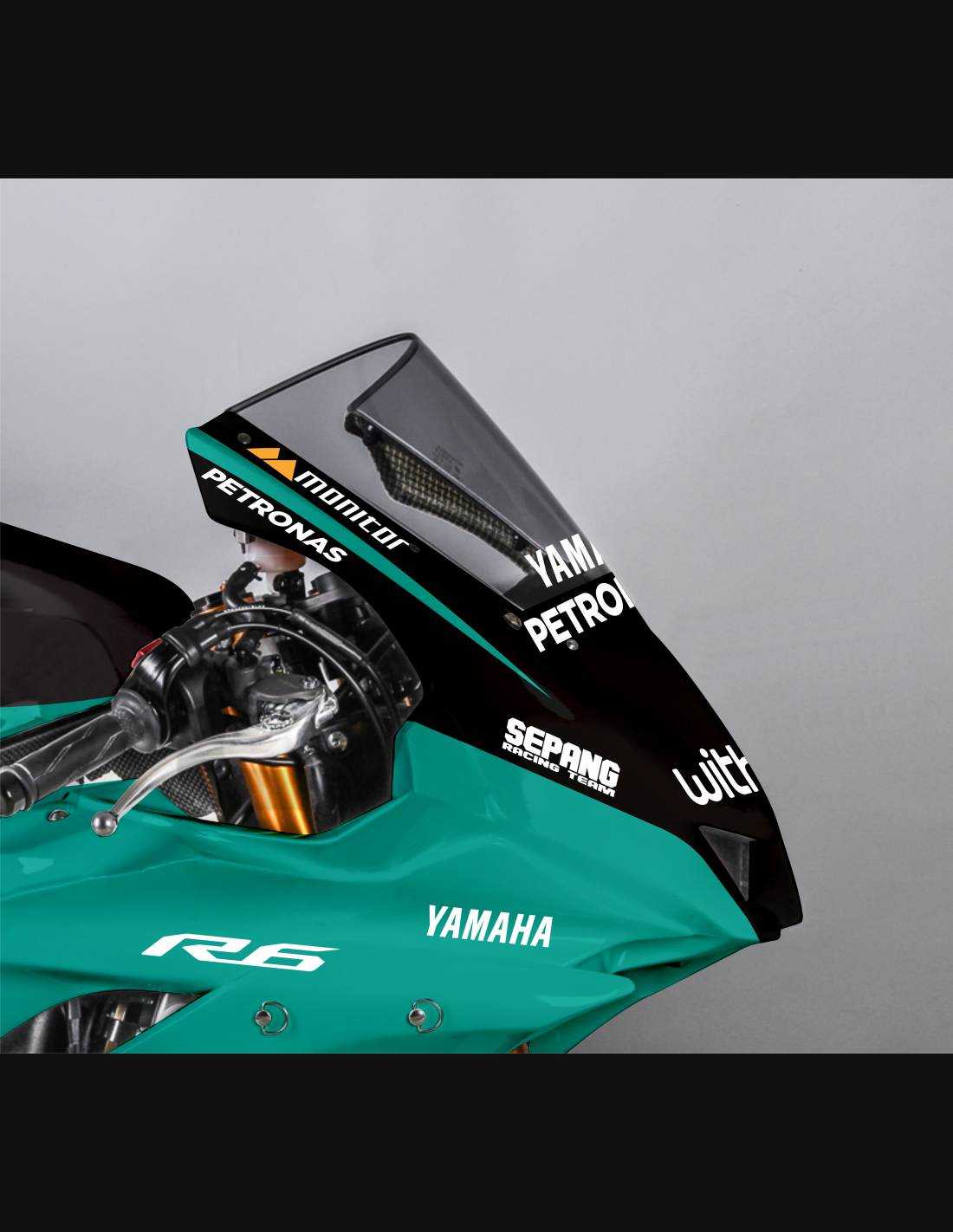 Elite: utilizamos pinturas de alta calidad con tonalidades similares a las originales. Las pegatinas se imprimen con impresoras de 8 colores que les dan un brillo y matices impecables. Todo el gráfico se encuentra bajo tres capas de transparente para mantener los colores del carenado brillantes con el tiempo. También pintamos todo el kit de carenado por dentro.