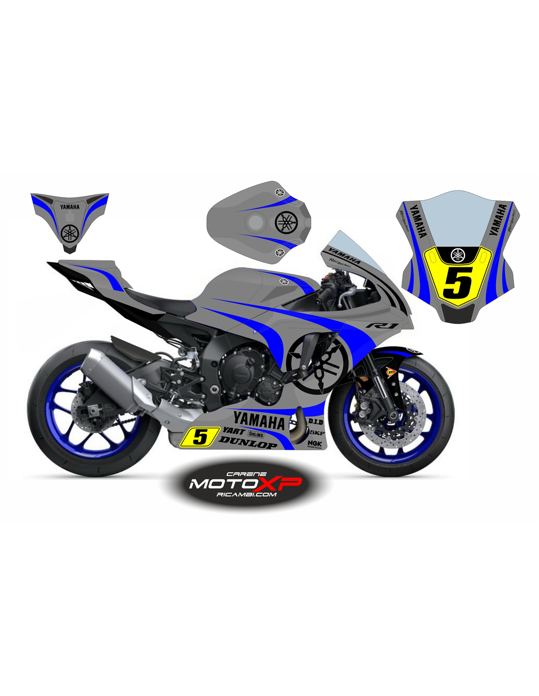 El kit de carenados incluye: carenado frontal, laterales de derecha y izquierda, quilla cerrada homologada para la pista, colin (el cubre deposito, y guardabarros delantero no se incluye en el precio).