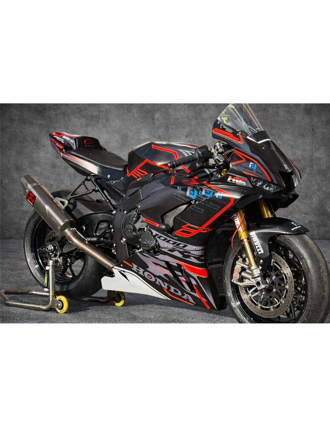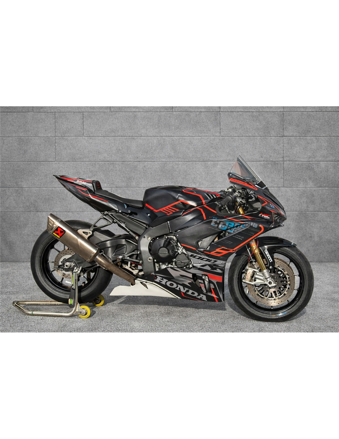 Elite: utilizamos pinturas de alta calidad con tonalidades similares a las originales. Las pegatinas se imprimen con impresoras de 8 colores que les dan un brillo y matices impecables. Todo el gráfico se encuentra bajo tres capas de transparente para mantener los colores del carenado brillantes con el tiempo. También pintamos todo el kit de carenado por dentro.