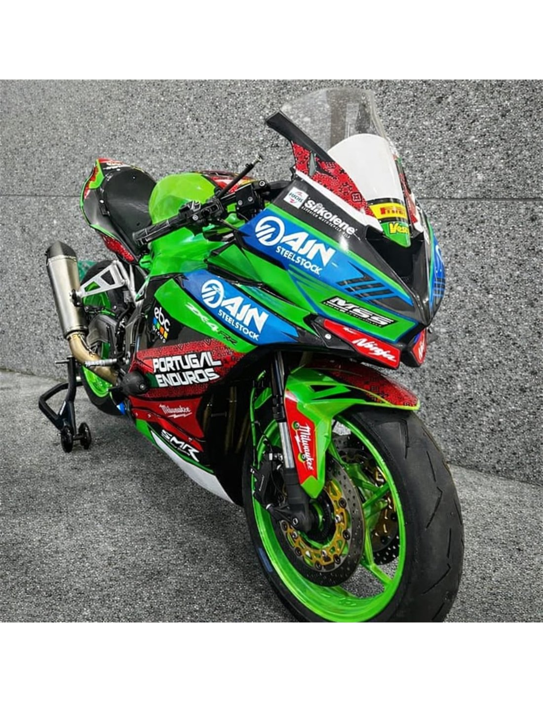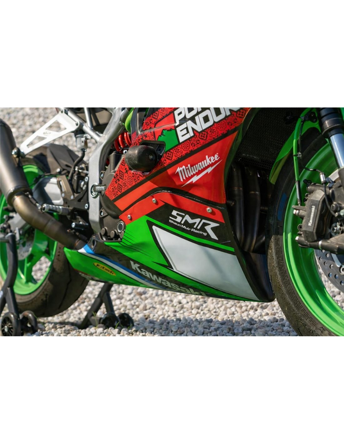 Elite: Usamos colores compatibles con el deposito original de la motocicleta (por ejemplo, el verde de Kawasaki). Las pegatinas se imprimen con impresoras de 8 colores que les dan un brillo y matices impecables. Todo el gráfico se encuentra bajo tres capas de transparente para mantener los colores del carenado brillantes con el tiempo. También pintamos todo el kit de carenado por dentro.