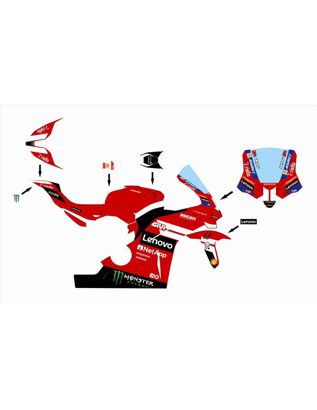 El kit de carenado incluye: