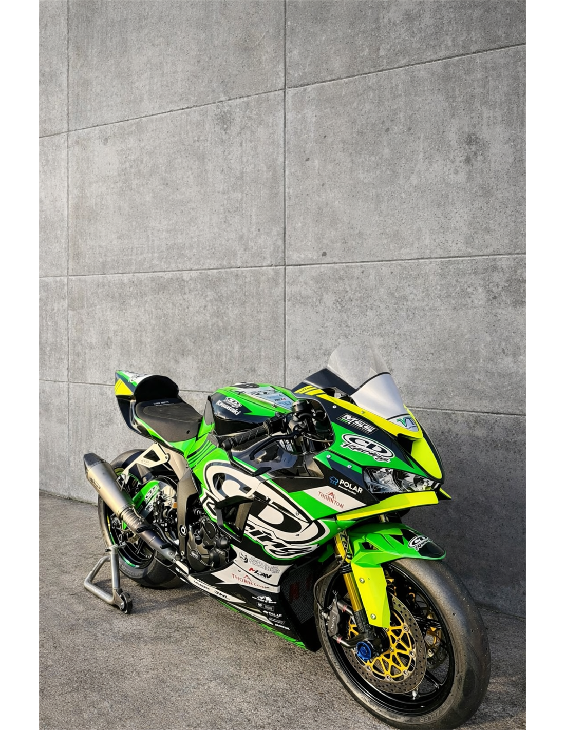 Elite: Usamos colores compatibles con el deposito original de la motocicleta (por ejemplo, el verde de Kawasaki). Las pegatinas se imprimen con impresoras de 8 colores que les dan un brillo y matices impecables. Todo el gráfico se encuentra bajo tres capas de transparente para mantener los colores del carenado brillantes con el tiempo. También pintamos todo el kit de carenado por dentro.
