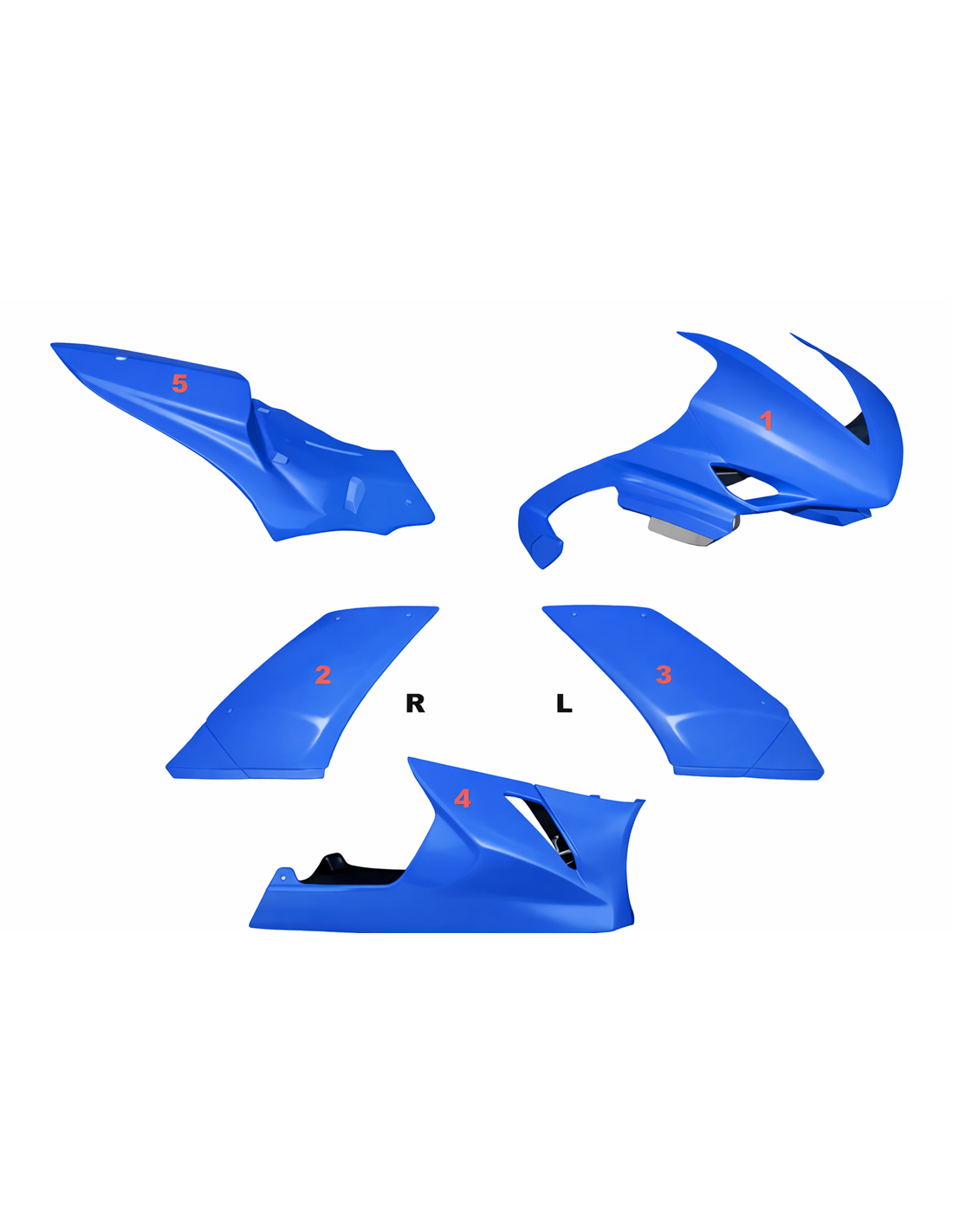 El kit de carenados incluye: carenado frontal, laterales de derecha y izquierda, quilla cerrada homologada para la pista, colin (el cubre deposito no se incluye en el precio).