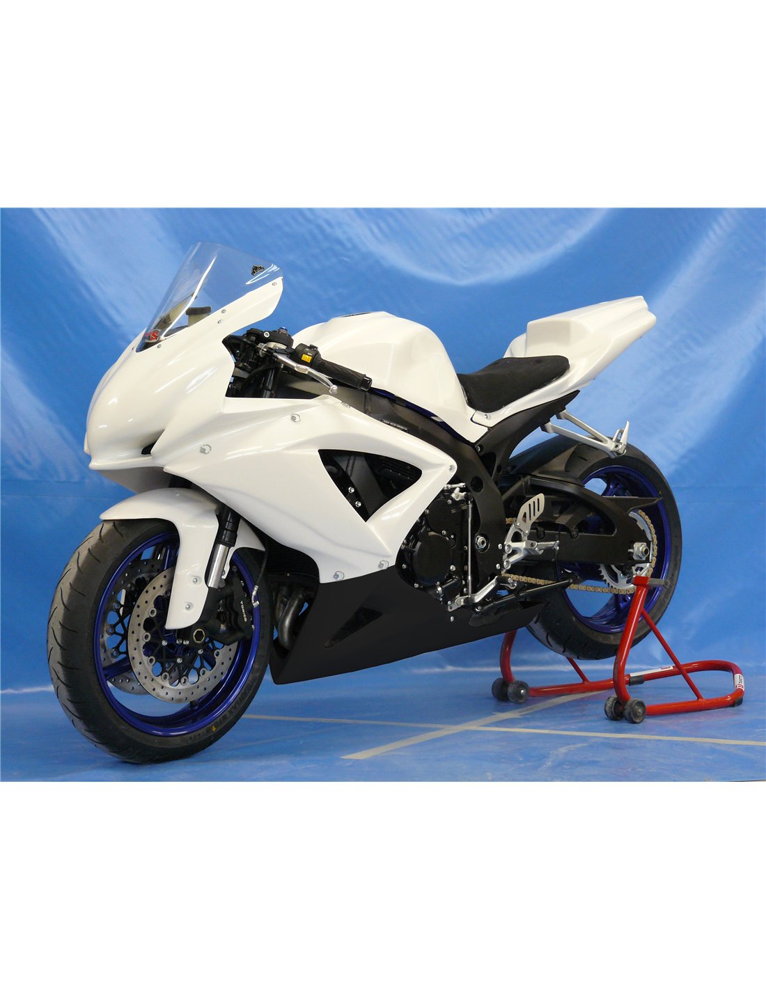 Nuestros carenados racing son en fibra de vidrio, tienen refuerzos en carbono y kevlar en las areas de major stress. Se incluye una quilla cerrada, entonces nuestros carenados son homologados para las competiciones profesionales y amatoriales en las pistas. Indicamos donde tiene que hacer los agujeros, asì puede hacer el agujero de la dimension correcta de su tornillo. El carenado es pintado podemos personalizar como quiere. Puede escribir todas las modificaciones cuando hace el pedido. Mediante la compra,se aceptan las condiciones de venta.