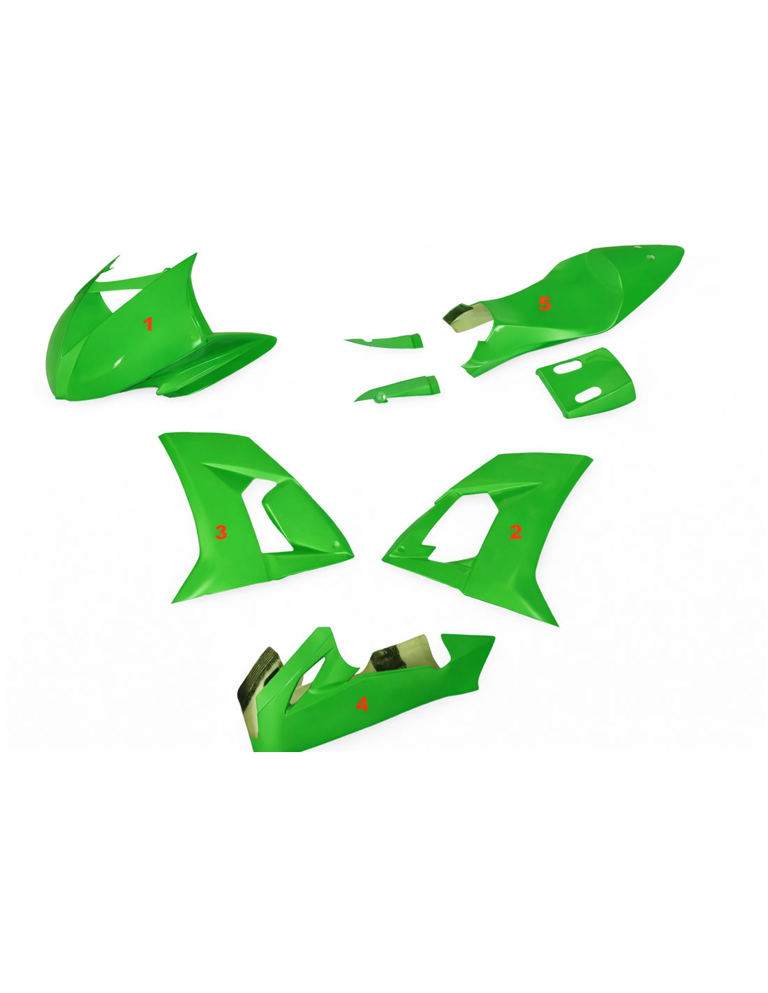 El kit de carenados incluye: carenado frontal, laterales de derecha y izquierda, quilla cerrada homologada para la pista, colin (el cubre deposito no se incluye en el precio).