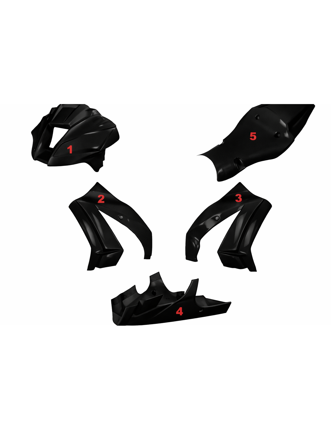 El kit de carenados incluye: carenado frontal, laterales de derecha y izquierda, quilla, colin (el cubre deposito no se incluye en el precio).