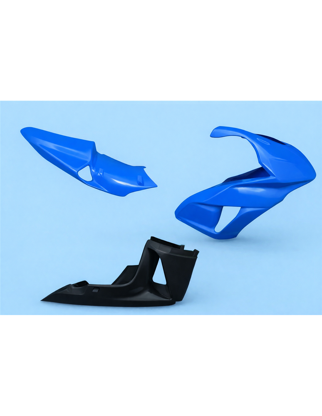 El kit de carenados incluye: carenado frontal, laterales de derecha y izquierda, quilla cerrada homologada para la pista, colin (el cubre deposito no se incluye en el precio).