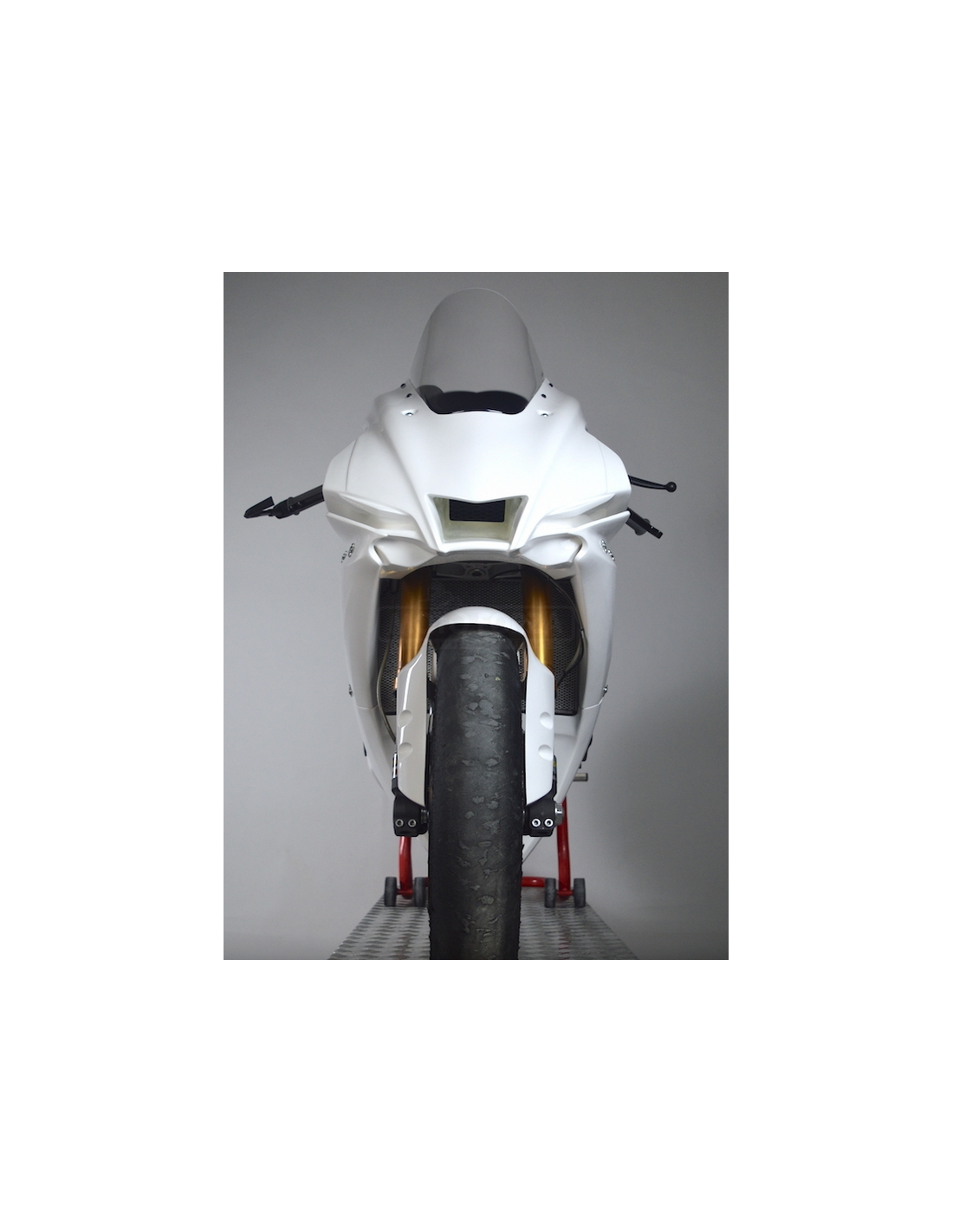 Nuestros carenados racing son en fibra de vidrio, tienen refuerzos en carbono y kevlar en las areas de major stress. Se incluye una quilla cerrada, entonces nuestros carenados son homologados para las competiciones profesionales y amatoriales en las pistas. Indicamos donde tiene que hacer los agujeros, asì puede hacer el agujero de la dimension correcta de su tornillo.