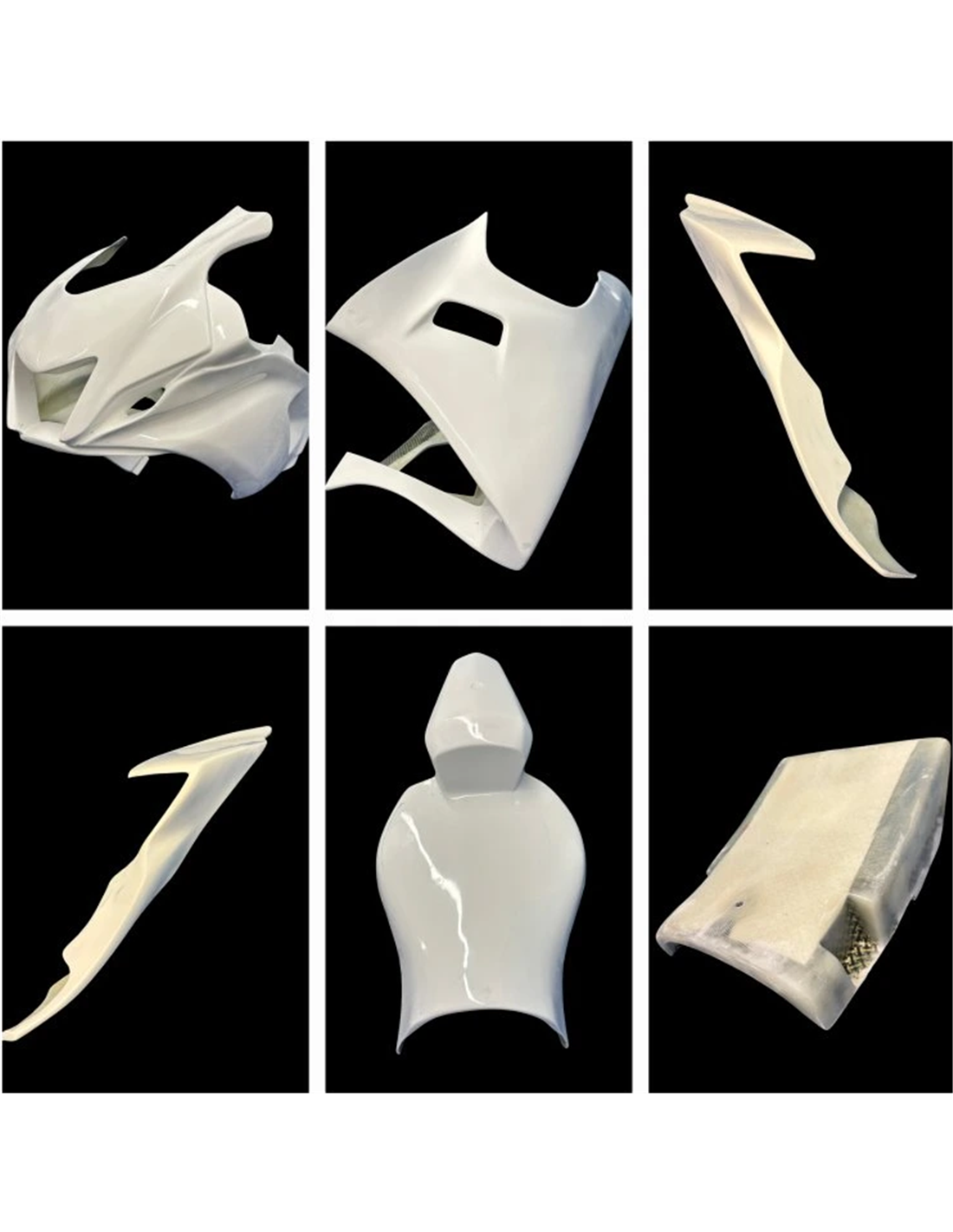 Nuestros carenados racing son en fibra de vidrio, tienen refuerzos en carbono y kevlar en las areas de major stress. Se incluye una quilla cerrada, entonces nuestros carenados son homologados para las competiciones profesionales y amatoriales en las pistas. Indicamos donde tiene que hacer los agujeros, asì puede hacer el agujero de la dimension correcta de su tornillo.
