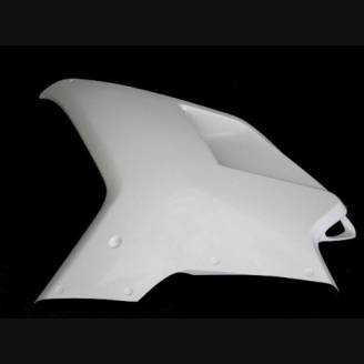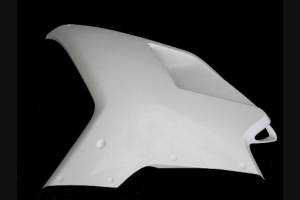 Nuestros carenados racing son en fibra de vidrio, tienen refuerzos en carbono y kevlar en las areas de major stress. Se incluye una quilla cerrada, entonces nuestros carenados son homologados para las competiciones profesionales y amatoriales en las pistas. Indicamos donde tiene que hacer los agujeros, asì puede hacer el agujero de la dimension correcta de su tornillo.
