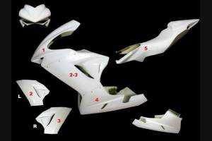 Nuestros carenados racing son en fibra de vidrio, tienen refuerzos en carbono y kevlar en las areas de major stress. Se incluye una quilla cerrada, entonces nuestros carenados son homologados para las competiciones profesionales y amatoriales en las pistas. Indicamos donde tiene que hacer los agujeros, asì puede hacer el agujero de la dimension correcta de su tornillo.