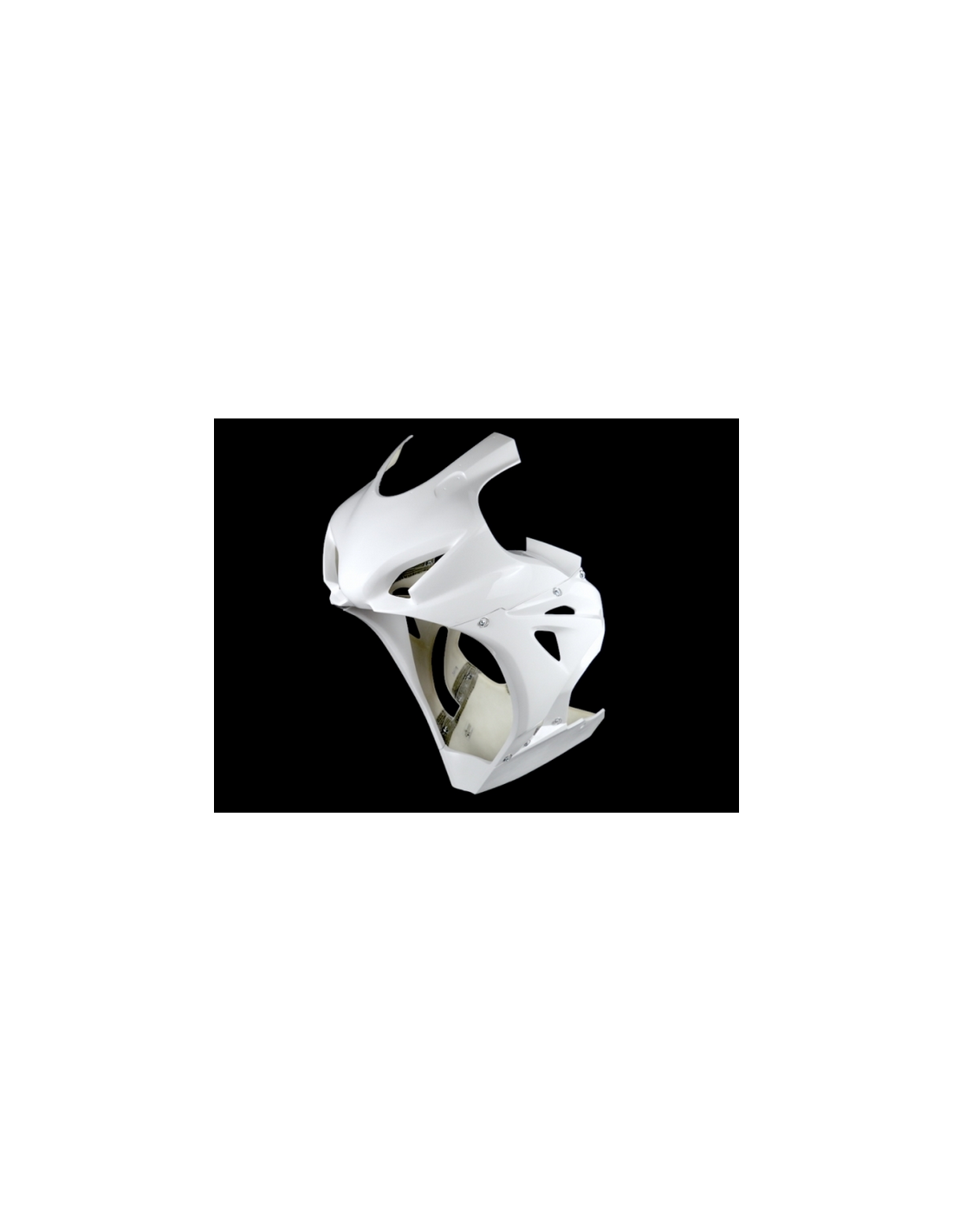 Nuestros carenados racing son en fibra de vidrio, tienen refuerzos en carbono y kevlar en las areas de major stress. Se incluye una quilla cerrada, entonces nuestros carenados son homologados para las competiciones profesionales y amatoriales en las pistas. Indicamos donde tiene que hacer los agujeros, asì puede hacer el agujero de la dimension correcta de su tornillo.