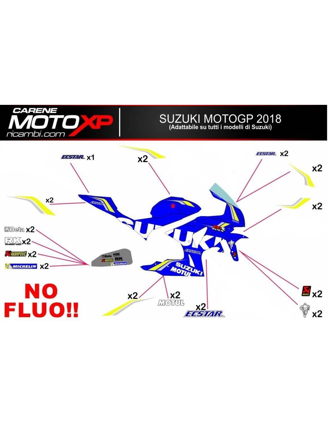 Los adhesivos están hechos de materiales de primera calidad y están dimensionados para el tipo de moto indicada en el momento de la compra. El kit se compone de todas las pegatinas no originales, para completar los gráficos elegidos: cupolo, lateral izquierdo y derecho, el tanque, quilla, colin, el basculante y el guardabarros delantero. Las pegatinas también se pueden personalizar (color, números, nombres y otros), escribir todo antes de agregar al carro en el espacio de "información adicional". El costo del kit de adhesivo no varía, excepto por modificaciones sustanciales (por ejemplo, colores fluorescentes). Mediante la compra, se aceptan las condiciones de venta.Se pueden unir por encima y por debajo de transparente. A menos que el cliente solicite lo contrario, el kit se suministra con la protección aplicada.