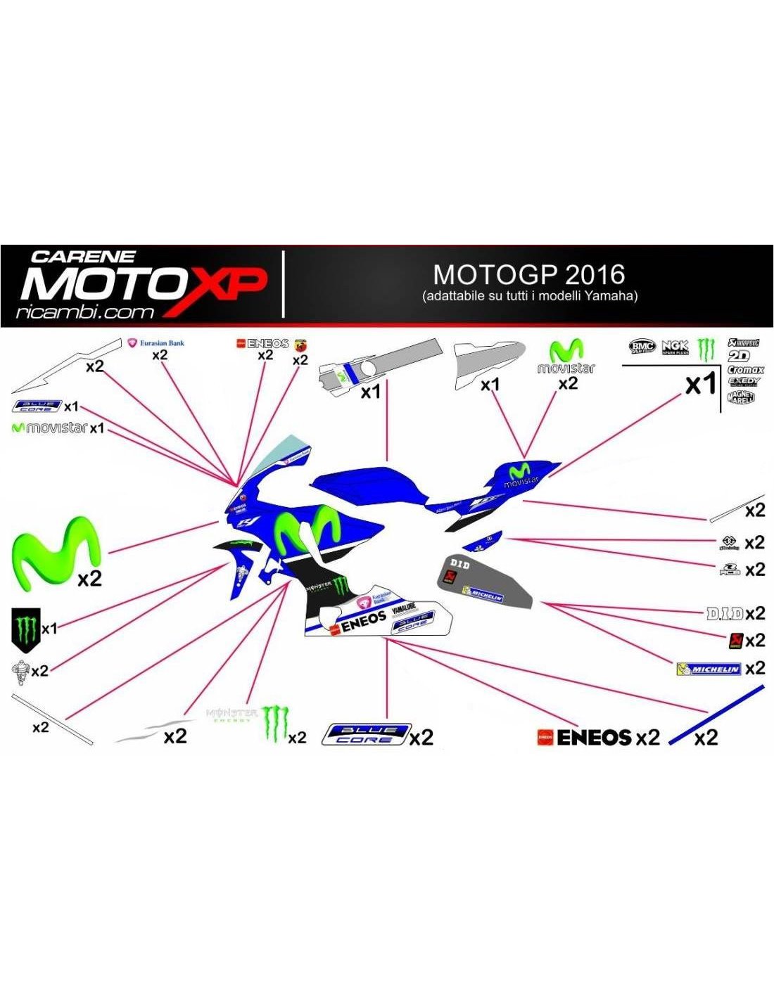 Los adhesivos están hechos de materiales de primera calidad y están dimensionados para el tipo de moto indicada en el momento de la compra. El kit se compone de todas las pegatinas no originales, para completar los gráficos elegidos: cupolo, lateral izquierdo y derecho, el tanque, quilla, colin, el basculante y el guardabarros delantero. Las pegatinas también se pueden personalizar (color, números, nombres y otros), escribir todo antes de agregar al carro en el espacio de "información adicional". El costo del kit de adhesivo no varía, excepto por modificaciones sustanciales (por ejemplo, colores fluorescentes). Mediante la compra, se aceptan las condiciones de venta.Se pueden unir por encima y por debajo de transparente. A menos que el cliente solicite lo contrario, el kit se suministra con la protección aplicada.