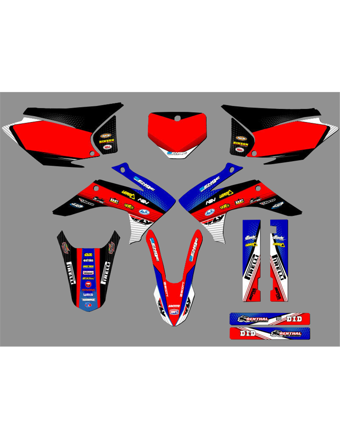 Los adhesivos que producimos están fabricados con materiales crystal de primera calidad que se adaptarán fácil y perfectamente a los plásticos de la motocicleta del cliente. La resistencia del material permite que nuestro gráfico permanezca perfectamente adherido incluso durante las condiciones de uso más difíciles de la motocicleta. La instalación, gracias a los canales de descarga de aire, permite instalar las pegatinas de forma suave y sin burbujas. Utilizamos maquinarias de última generación para la impresión, por lo que podemos imprimir colores brillantes y tonalidades de alta calidad. Incluimos una capa protectora en los adhesivos, para que estén siempre brillantes durante los años y estén protegidas del agua y la suciedad. Es posible personalizar las pegatinas como prefiera. Puede agregar, eliminar o cambiar patrocinadores técnicos, agregar un número de carrera personalizado o su propio nombre. Puede indicar todos los cambios en el campo "Personalización del producto" en el sitio web durante la compra. No nos limitamos solo a los gráficos de nuestro sitio web, puede enviarnos por correo electrónico o WhatsApp una imagen de un diseño que no tenemos, para que podamos hacerle un presupuesto y luego hacerlo. Mediante la compra, se aceptan las condiciones de venta.