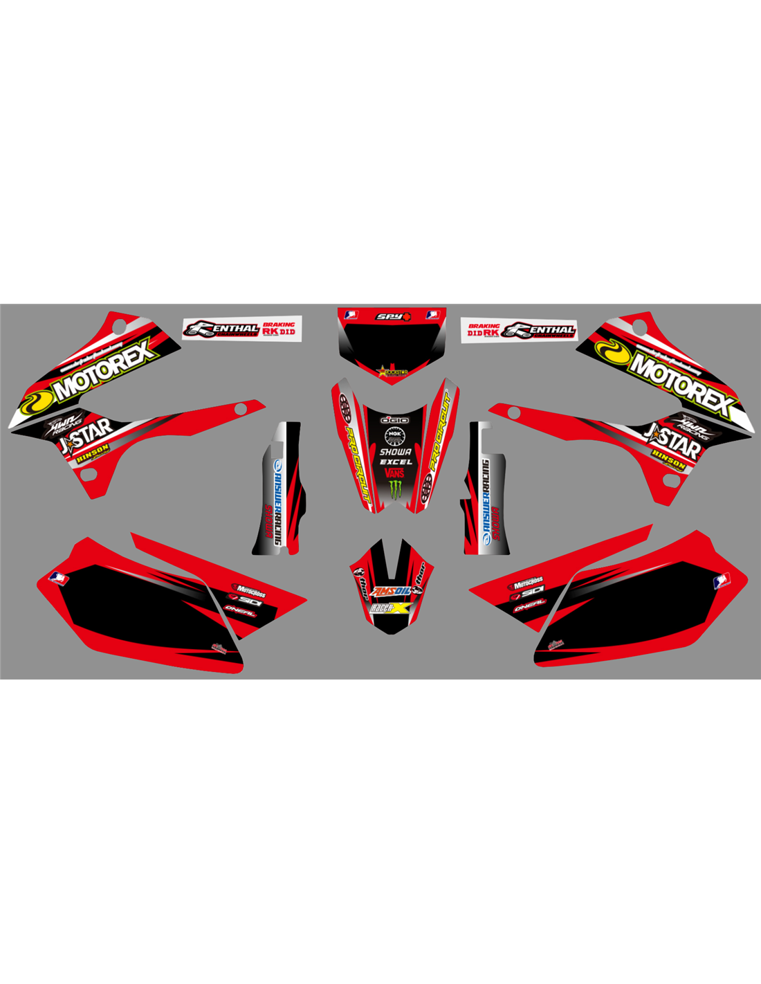 Los adhesivos que producimos están fabricados con materiales crystal de primera calidad que se adaptarán fácil y perfectamente a los plásticos de la motocicleta del cliente. La resistencia del material permite que nuestro gráfico permanezca perfectamente adherido incluso durante las condiciones de uso más difíciles de la motocicleta. La instalación, gracias a los canales de descarga de aire, permite instalar las pegatinas de forma suave y sin burbujas. Utilizamos maquinarias de última generación para la impresión, por lo que podemos imprimir colores brillantes y tonalidades de alta calidad. Incluimos una capa protectora en los adhesivos, para que estén siempre brillantes durante los años y estén protegidas del agua y la suciedad. Es posible personalizar las pegatinas como prefiera. Puede agregar, eliminar o cambiar patrocinadores técnicos, agregar un número de carrera personalizado o su propio nombre. Puede indicar todos los cambios en el campo "Personalización del producto" en el sitio web durante la compra. No nos limitamos solo a los gráficos de nuestro sitio web, puede enviarnos por correo electrónico o WhatsApp una imagen de un diseño que no tenemos, para que podamos hacerle un presupuesto y luego hacerlo. Mediante la compra, se aceptan las condiciones de venta.