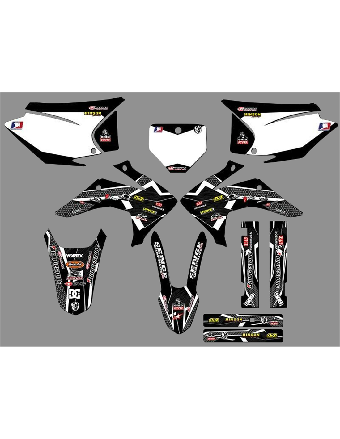 Les autocollants que nous produisons sont fabriqués à partir de matériaux crystal de première qualité qui s'adapteront facilement et parfaitement sur les plastiques de la moto du client. La résistance du matériau permet à notre graphisme de rester parfaitement collé même dans les conditions d'utilisation les plus difficiles de la moto. L'installation, grâce aux canaux d'évacuation d'air, vous permet d'installer les autocollants en douceur et sans bulles. Nous utilisons des machines de dernière génération pour l'impression, nous pouvons donc imprimer des couleurs vives et des nuances de haute qualité. Nous incluons une couche protectrice sur les autocollants, afin qu'ils soient toujours brillants au fil des ans et soient protégés contre l'eau et la saleté. Il est possible de personnaliser les autocollants selon vos préférences. Vous pouvez ajouter, supprimer ou modifier des sponsors techniciens, ajouter un numéro de course personnalisé ou votre propre nom. Vous pouvez indiquer toutes les modifications dans le champ «Personnalisation» sur le site Web lors de l'achat. Nous ne nous limitons pas seulement aux graphiques sur notre site Web, vous pouvez nous envoyer par e-mail ou WhatsApp une photo d'un design que nous n'avons pas, afin que nous puissions vous faire un devis et ensuite le faire. Par l'achat, vous acceptez les conditions de vente.