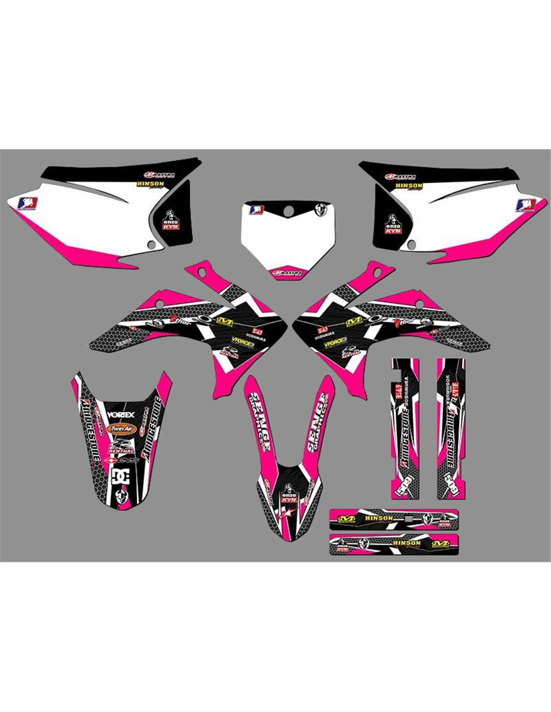 Les autocollants que nous produisons sont fabriqués à partir de matériaux crystal de première qualité qui s'adapteront facilement et parfaitement sur les plastiques de la moto du client. La résistance du matériau permet à notre graphisme de rester parfaitement collé même dans les conditions d'utilisation les plus difficiles de la moto. L'installation, grâce aux canaux d'évacuation d'air, vous permet d'installer les autocollants en douceur et sans bulles. Nous utilisons des machines de dernière génération pour l'impression, nous pouvons donc imprimer des couleurs vives et des nuances de haute qualité. Nous incluons une couche protectrice sur les autocollants, afin qu'ils soient toujours brillants au fil des ans et soient protégés contre l'eau et la saleté. Il est possible de personnaliser les autocollants selon vos préférences. Vous pouvez ajouter, supprimer ou modifier des sponsors techniciens, ajouter un numéro de course personnalisé ou votre propre nom. Vous pouvez indiquer toutes les modifications dans le champ «Personnalisation» sur le site Web lors de l'achat. Nous ne nous limitons pas seulement aux graphiques sur notre site Web, vous pouvez nous envoyer par e-mail ou WhatsApp une photo d'un design que nous n'avons pas, afin que nous puissions vous faire un devis et ensuite le faire. Par l'achat, vous acceptez les conditions de vente.