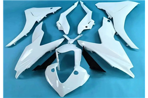 Le kit carénage comprend : tête de fourche, flanc gauche et droit, bas de carénage gauche et droit, coque arrière, garde boue avant et tous les parties noir pour compléter les carénages.