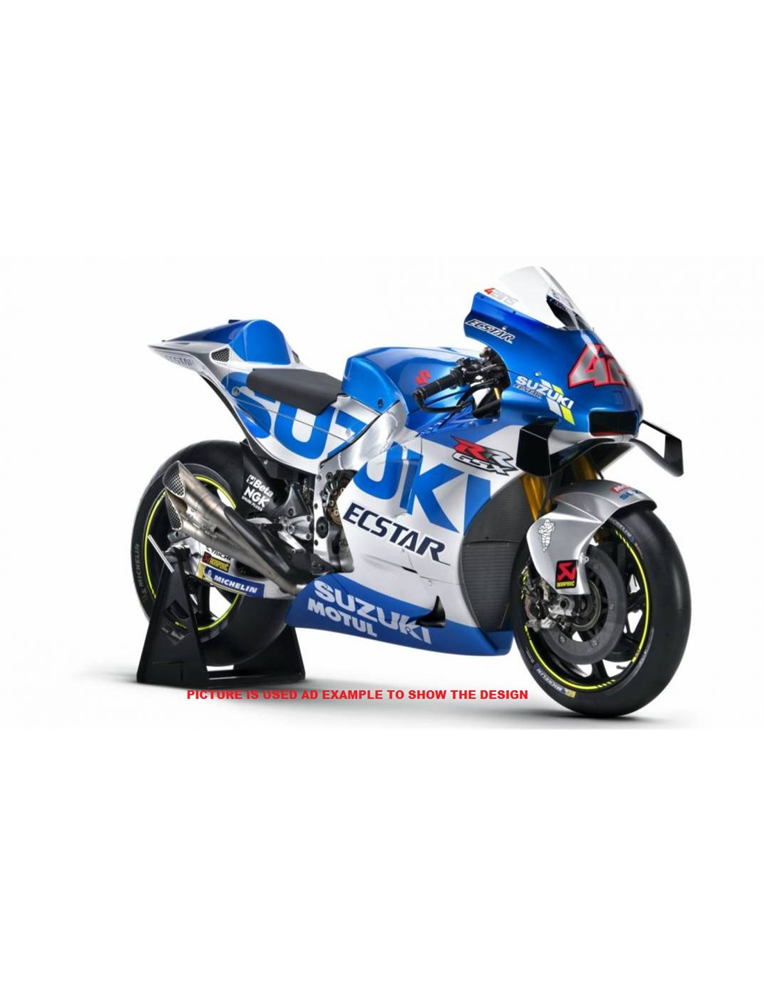 Elite : nous utilisons des peintures de haute qualité avec des nuances similaires à l'original. Les stickers sont imprimés à l'aide d'imprimantes 8 couleurs qui leur confèrent une brillance et des nuances impeccables. L’ensemble du graphisme est recouvert de trois couches de transparent pour conserver les couleurs de le carénage vives au fil du temps. Nous peignons également tout le kit de carénage à l'intérieur.