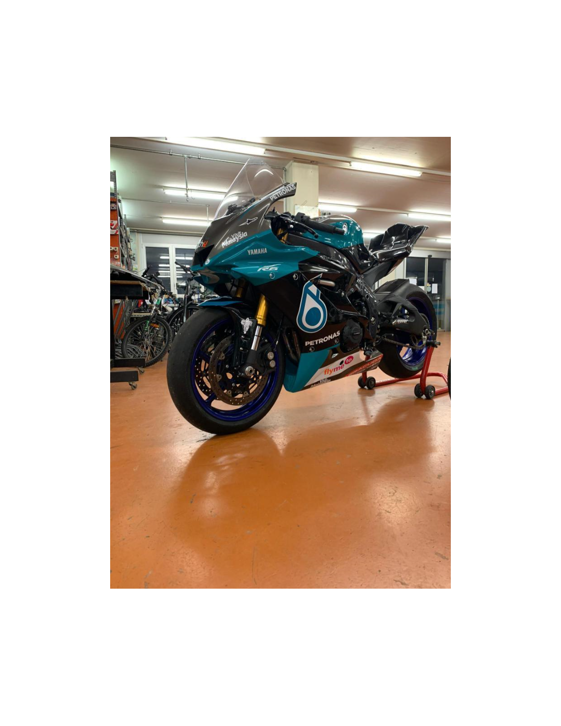 Elite : nous utilisons des peintures de haute qualité avec des nuances similaires à l'original. Les stickers sont imprimés à l'aide d'imprimantes 8 couleurs qui leur confèrent une brillance et des nuances impeccables. L’ensemble du graphisme est recouvert de trois couches de transparent pour conserver les couleurs de le carénage vives au fil du temps. Nous peignons également tout le kit de carénage à l'intérieur.