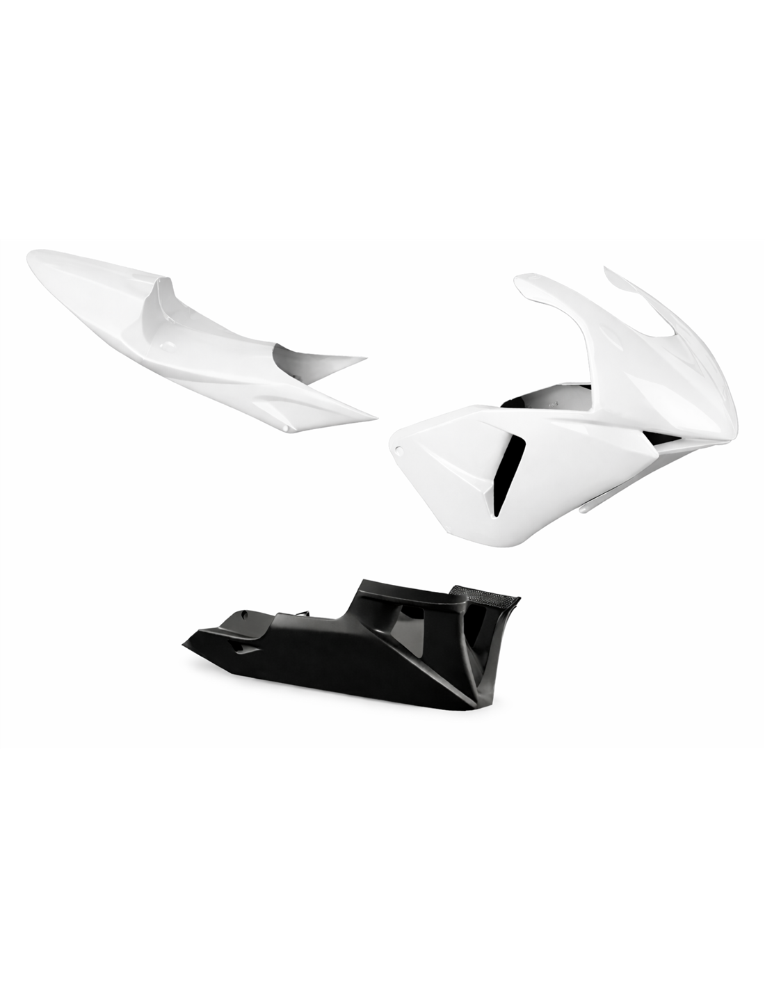 Le kit carénages comprend: tête de fourche, flanc gauche et droit, bas de carénage fermé et homologué pour la piste, coque arrière complet (le cache réservoir n’est pas inclus).