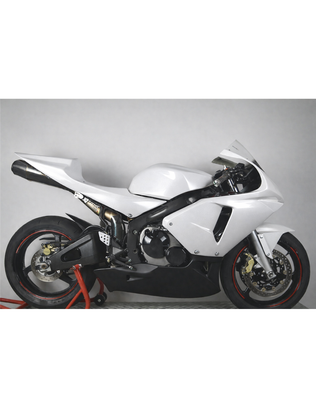 Le kit carénages comprend: tête de fourche, flanc gauche et droit, bas de carénage fermé et homologué pour la piste, coque arrière complet (le cache réservoir n’est pas inclus).