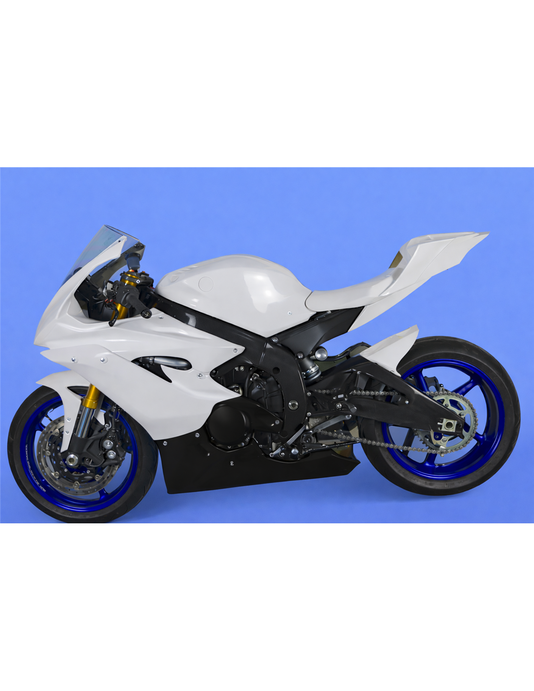 Le kit carénages comprend: tête de fourche, flanc gauche et droit, bas de carénage fermé et homologué pour la piste, coque arrière complet (le cache réservoir n’est pas inclus).