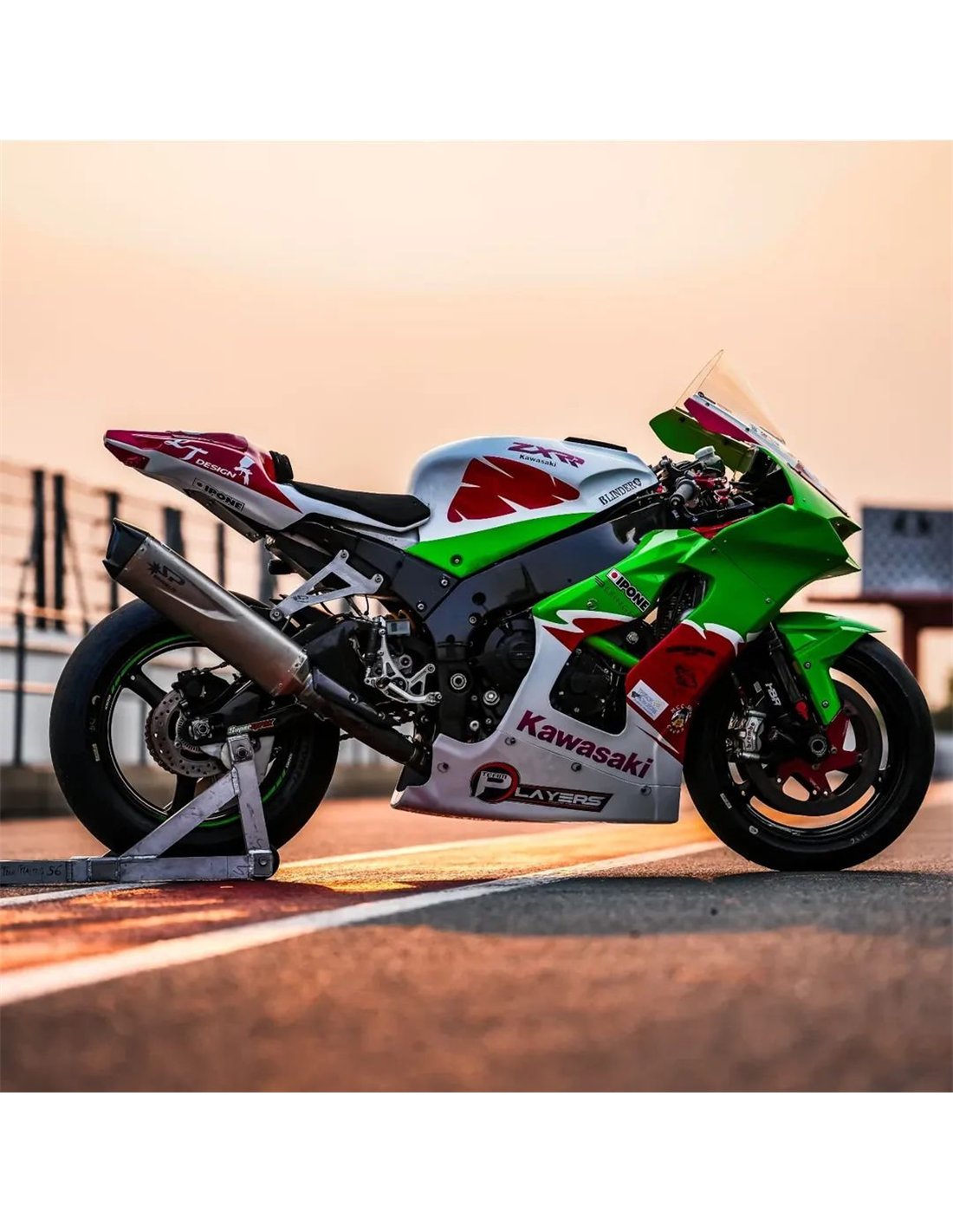 Elite: we use compatible colours with the stock tank of the motorcycle (e.g. Kawasaki’s green). The stickers are printed using 8-color printers which give them impeccable shine and shades. The whole graphic is under three layers of clear coat to keep the colors of the bodywork bright over time. We also paint the whole fairing kit inside.