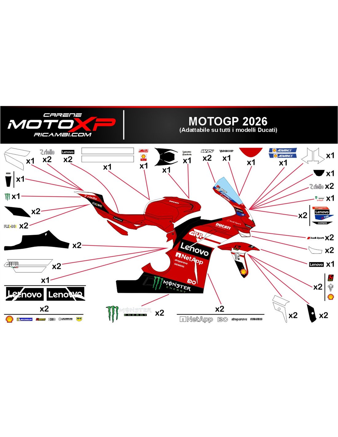 Kit adesivi compatibile con Ducati Panigale V4R 2026 - MXPKAD19157