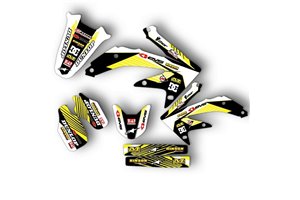 Gli adesivi sono realizzati con materiali crystal di prima qualità che permettono di adattarsi facilmente e perfettamente alle plastiche della moto del cliente. La resistenza del materiale permette alle nostre grafiche di rimanere correttamente incollate anche durante le più difficili condizioni di uso della moto. Il montaggio, grazie ai canali per lo scarico dell’aria, consente di installare agevolmente il prodotto e senza bolle. Utilizziamo macchinari di ultima generazione per la stampa, permettendo di stampare colori brillanti e sfumature in alta definizione. Sugli adesivi includiamo uno strato protettivo che riesce a mantenerli sempre lucenti nel corso degli anni, preservandoli anche da acqua e sporco. È possibile personalizzare il kit adesivi a proprio piacimento. Si possono aggiungere, togliere o sostituire sponsor tecnici, inserire un numero da gara personalizzato o il proprio nome. Si possono indicare tutte le modifiche nell’apposito spazio “Personalizzazione del prodotto” al momento dell’acquisto. Non ci limitiamo solo alle grafiche presenti sul nostro sito, inviandoci tramite mail o WhatsApp la foto di una grafica che non abbiamo, potremo farvi un preventivo e successivamente realizzarla. Con l’acquisto, si accettano le condizioni di vendita.