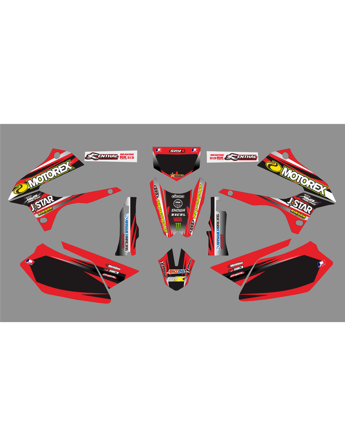 Gli adesivi sono realizzati con materiali crystal di prima qualità che permettono di adattarsi facilmente e perfettamente alle plastiche della moto del cliente. La resistenza del materiale permette alle nostre grafiche di rimanere correttamente incollate anche durante le più difficili condizioni di uso della moto. Il montaggio, grazie ai canali per lo scarico dell’aria, consente di installare agevolmente il prodotto e senza bolle. Utilizziamo macchinari di ultima generazione per la stampa, permettendo di stampare colori brillanti e sfumature in alta definizione. Sugli adesivi includiamo uno strato protettivo che riesce a mantenerli sempre lucenti nel corso degli anni, preservandoli anche da acqua e sporco. È possibile personalizzare il kit adesivi a proprio piacimento. Si possono aggiungere, togliere o sostituire sponsor tecnici, inserire un numero da gara personalizzato o il proprio nome. Si possono indicare tutte le modifiche nell’apposito spazio “Personalizzazione del prodotto” al momento dell’acquisto. Non ci limitiamo solo alle grafiche presenti sul nostro sito, inviandoci tramite mail o WhatsApp la foto di una grafica che non abbiamo, potremo farvi un preventivo e successivamente realizzarla. Con l’acquisto, si accettano le condizioni di vendita.