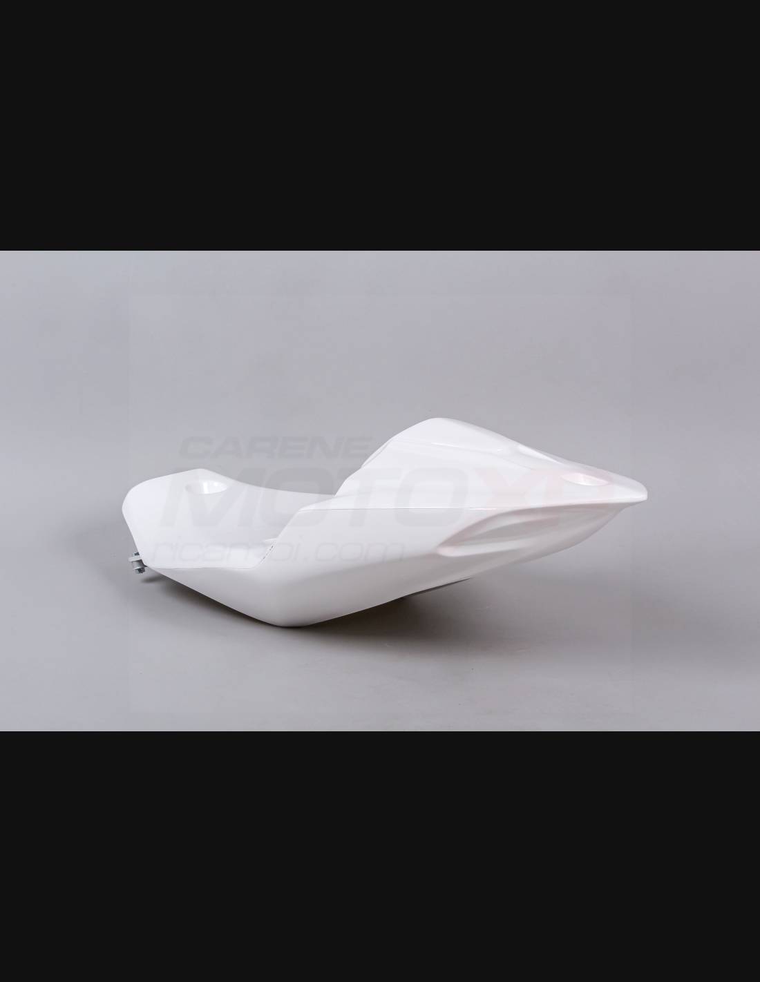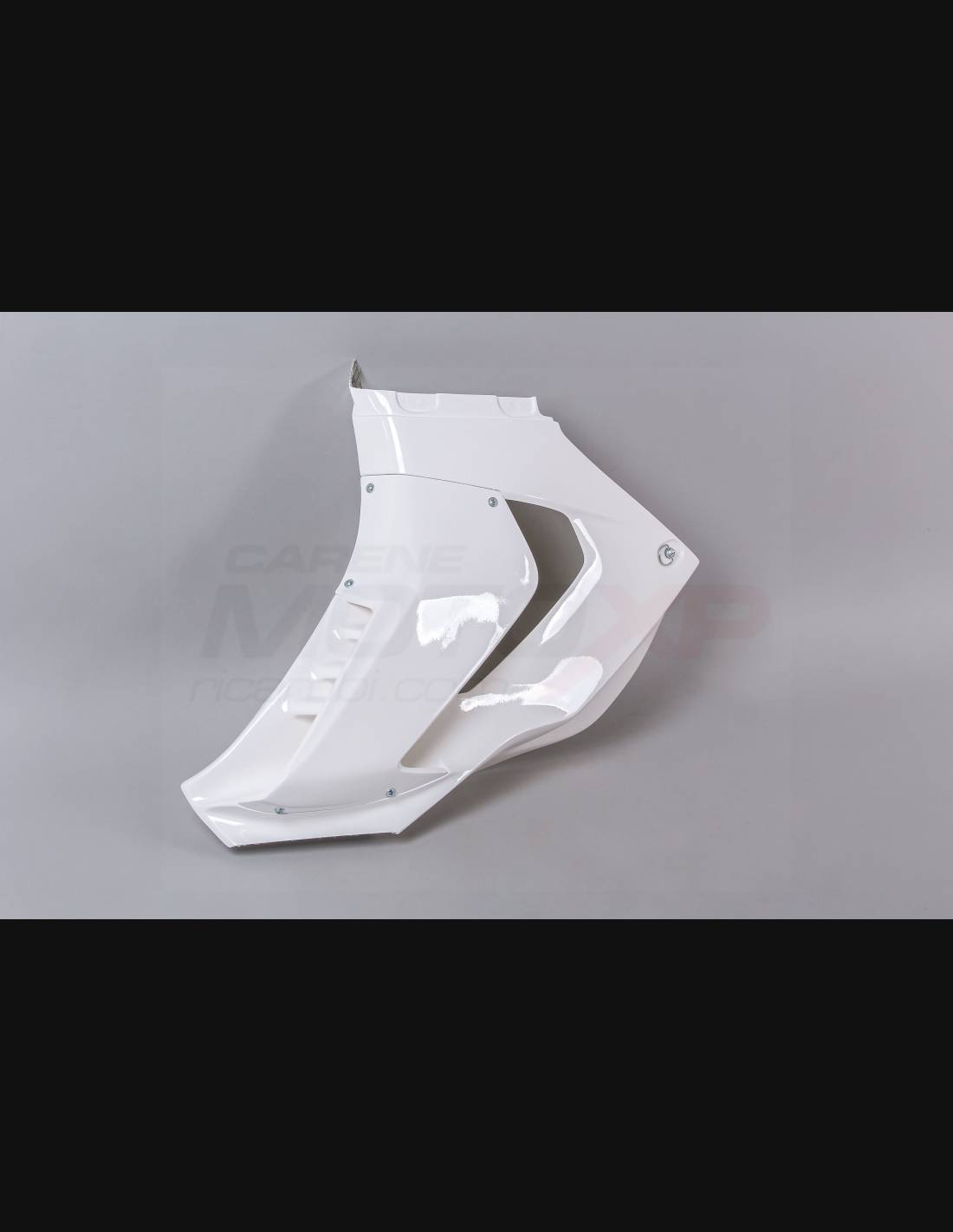 Le nostre carene racing sono realizzate in tessuto di vetroresina, rinforzate in carbonio e kevlar nei punti di maggiore sforzo. Sono omologate per i vari campionati e per l’uso amatoriale in pista grazie alla vasca chiusa raccogli liquido. Segniamo dove vanno forate, in modo da permettere al cliente finale di realizzare il foro in base alla dimensione della viteria che andrà ad utilizzare.