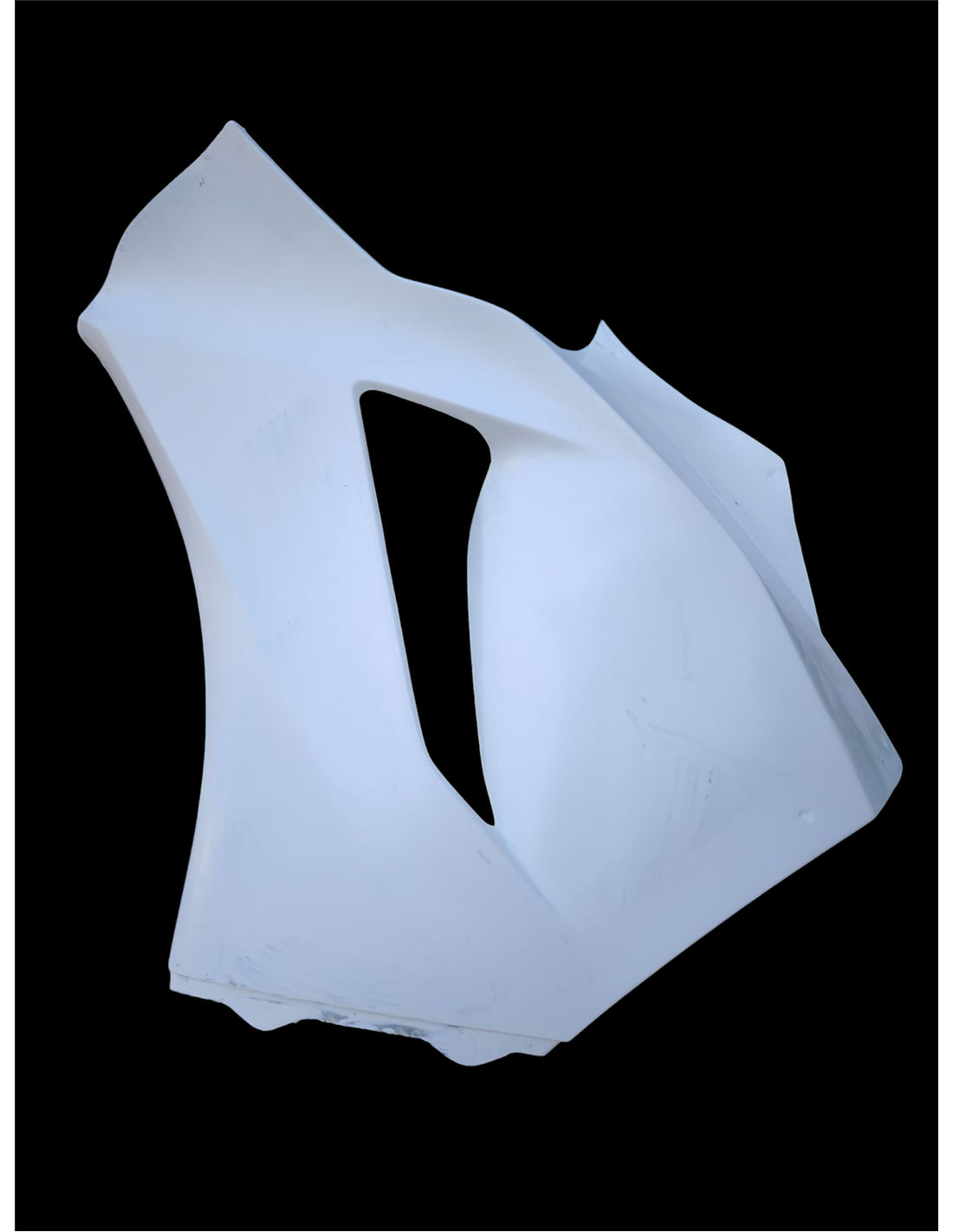 Le nostre carene racing sono realizzate in tessuto di vetroresina, rinforzate in carbonio e kevlar nei punti di maggiore sforzo. Sono omologate per i vari campionati e per l’uso amatoriale in pista grazie alla vasca chiusa raccogli liquido. Segniamo dove vanno forate, in modo da permettere al cliente finale di realizzare il foro in base alla dimensione della viteria che andrà ad utilizzare.