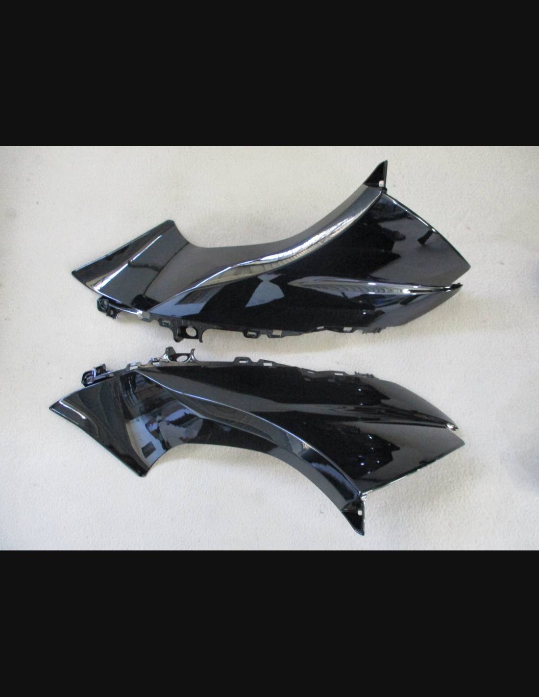 The fairing kit includes: front upper part, side fairings right and left, lower fairing right and left, back seat, front fender and all eventual internal black plastics.