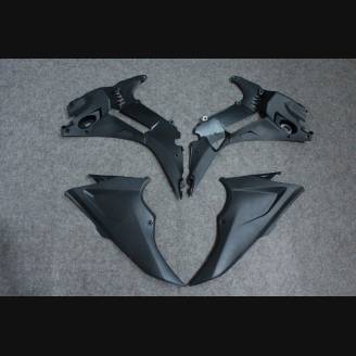 The fairing kit includes: front upper part, side fairings right and left, lower fairing right and left, back seat, front fender and all eventual internal black plastics.